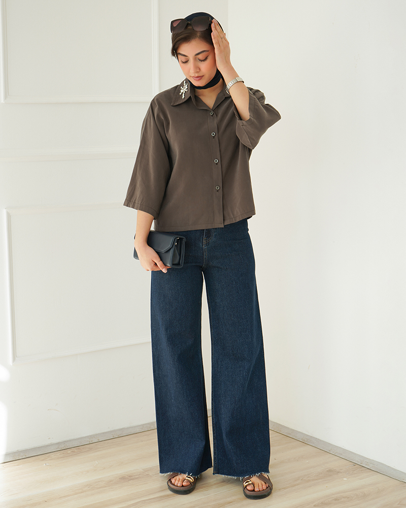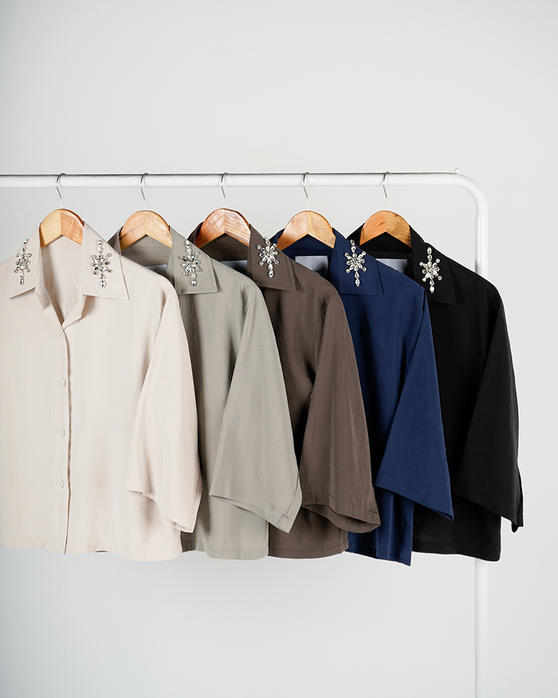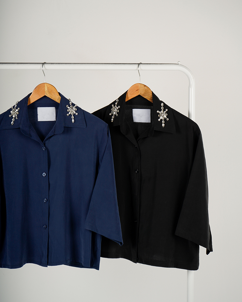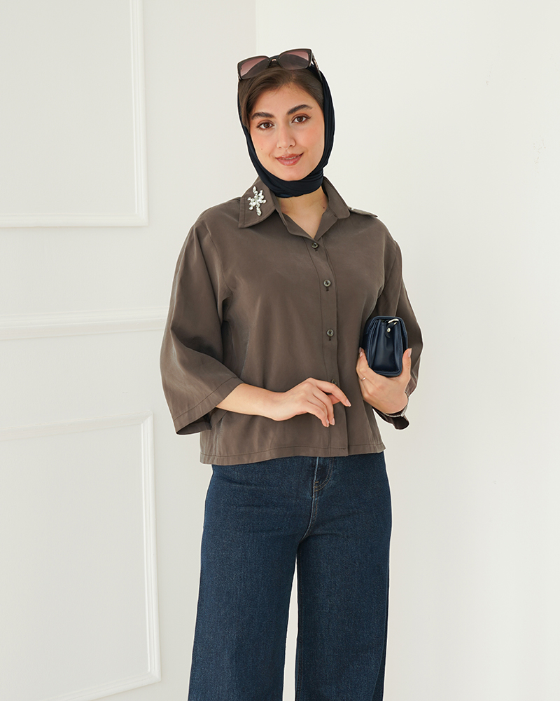 شومیز کوتاه یقه سنگ دوزی | هیبا