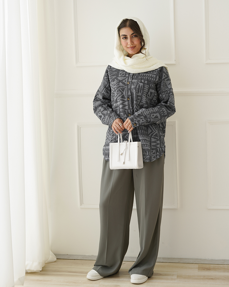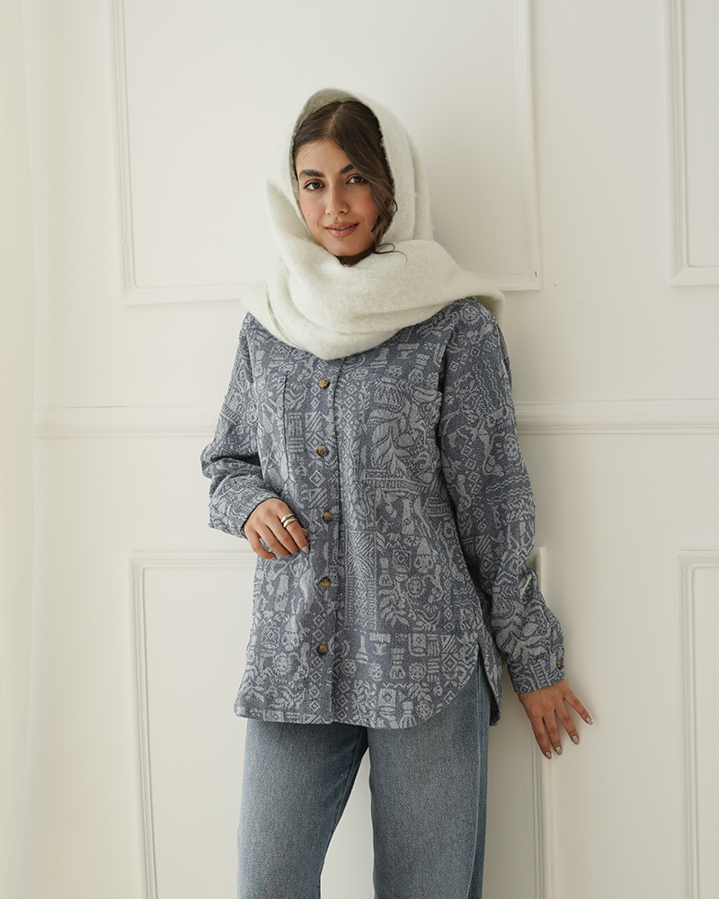 - توضیحات محصول: جنس شومیز، ژاکارد پاییزه می باشد. شومیز یقه مردانه و جلو دکمه است . دکمه های قسمت جلو این شومیز کاربردی می باشد.