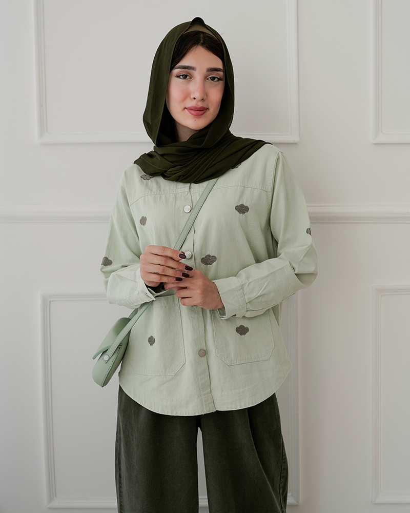 - توضیحات محصول: جنس شومیز کتان می باشد. دکمه های قسمت جلو و سر آستین کاربردی است. طرح های روی شومیز گلدوزی شده است. شومیز، دارای دو جیب کاربردی می باشد.