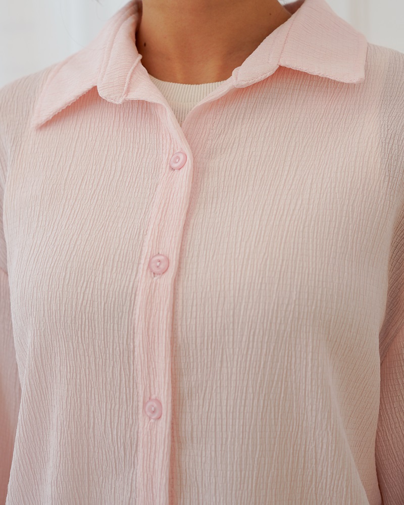 - توضیحات محصول: جنس شومیز کریشه پفکی می باشد. شومیز یقه مردانه است.
