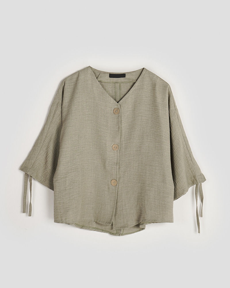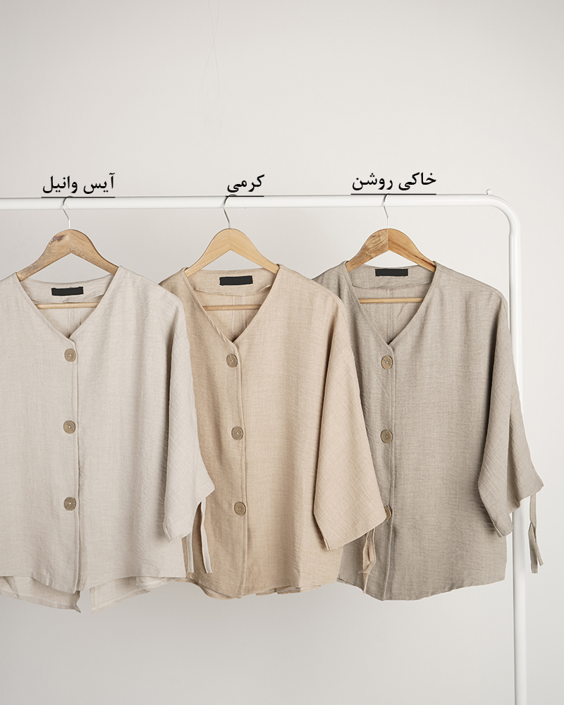 - توضیحات محصول: جنس شومیز شانتون می باشد. شومیز یقه گرد بوده و دکمه های قسمت جلوی شومیز کاربردی می باشد.