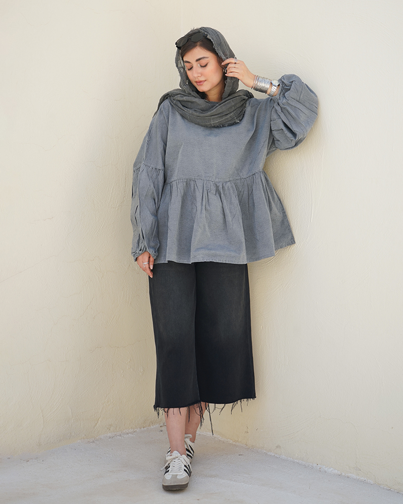 - توضیحات محصول: جنس شومیز تترون پلی استر می باشد. شومیز یقه گرد و پشت یقه دکمه دار می باشد. این محصول آستین بلند و قسمت مچ این شومیز کشی می باشد. شومیز جلو بسته بوده و دامن شومیز چین دار می باشد. تنخور این محصول عروسکی می باشد. این محصول فاقد آبرفت می باشد.