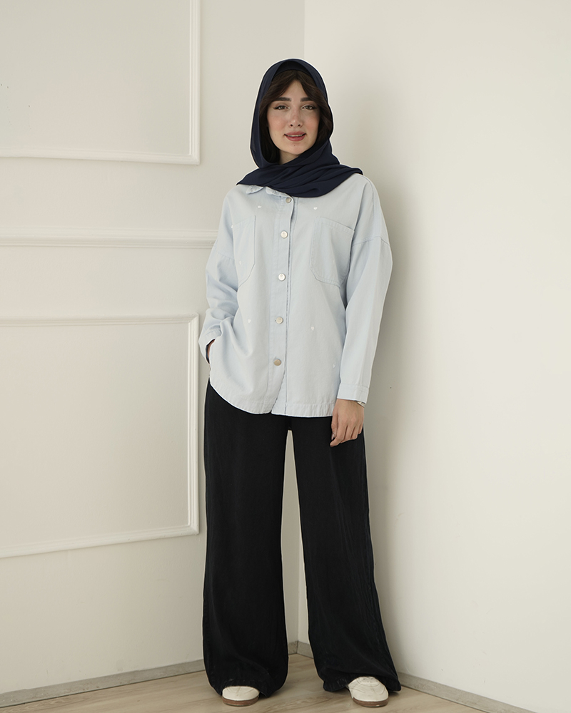 - توضیحات محصول: جنس شومیز، کتان است. شومیز دارای دو جیب کاربردی می باشد. طرح های روی شومیز، گلدوزی شده است.