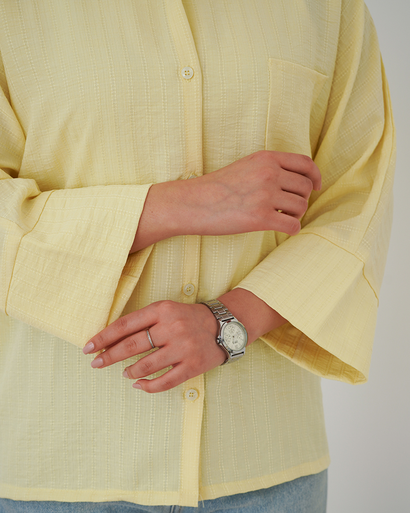 - توضیحات محصول: جنس شومیز کتیبه نخی می باشد. شومیز یقه مردانه است. این محصول دارای تک جیب کاربردی می باشد. میزان آبرفت از طریق جدول راهنمای سایز قابل مشاهده است.