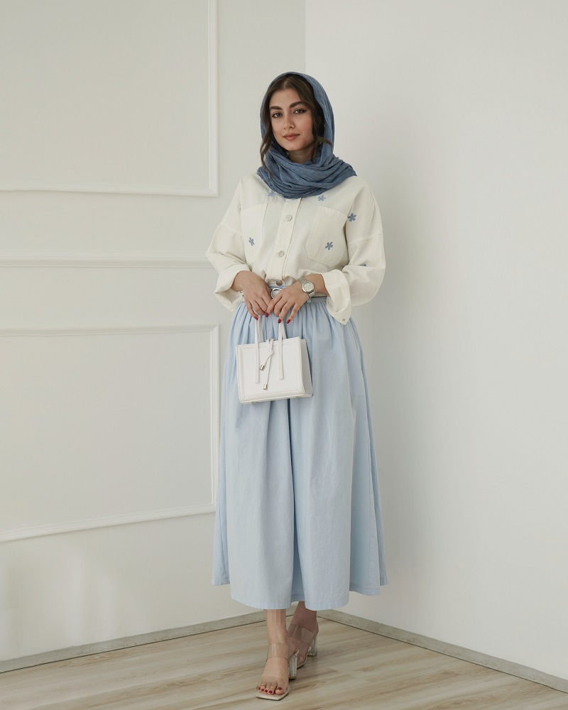 - توضیحات محصول: جنس شومیز، کتان است. شومیز دارای دو جیب کاربردی می باشد. طرح های روی شومیز، گلدوزی شده است.