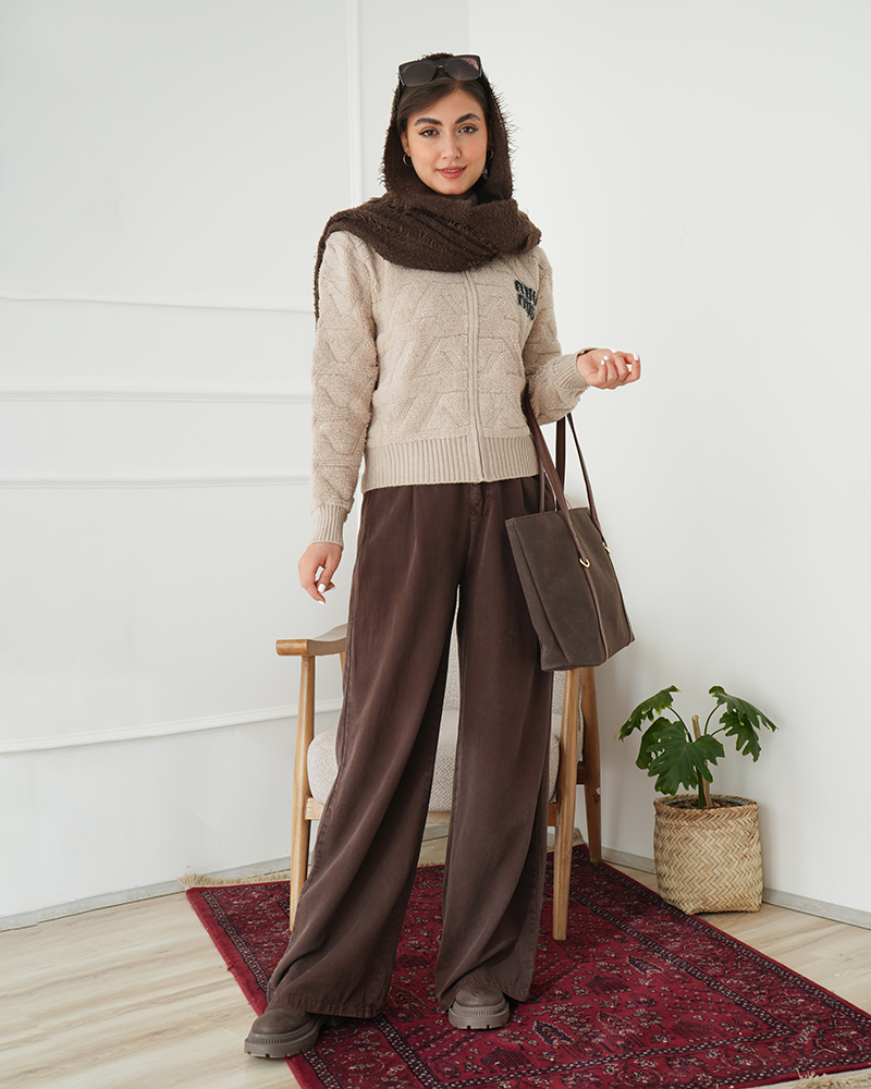 - توضیحات محصول: جنس سویشرت، بافت لطیف گرم بالا است. سوتیشرت آستین بلند و جلوزیپی می باشد. روی لباس نگین کاری شده است. این محصول کشسانی بالایی دارد.
