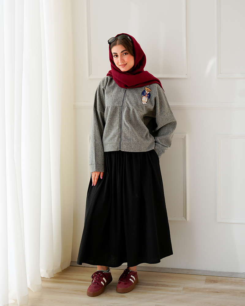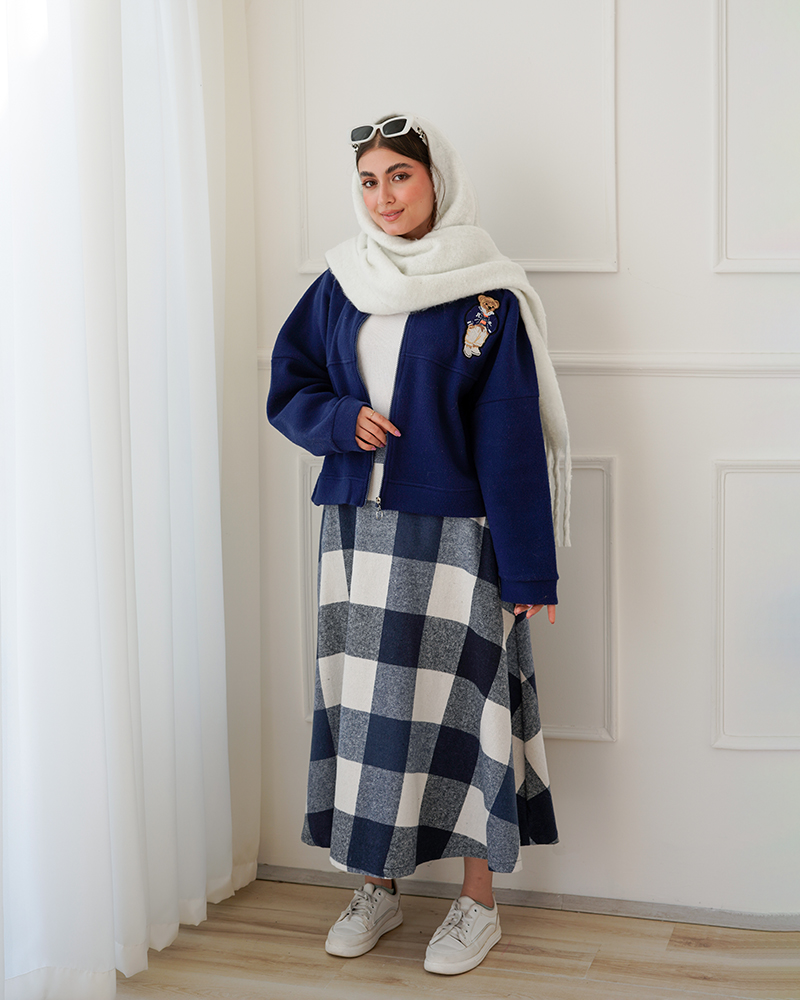 - توضیحات محصول: جنس سویشرت، فوتر است. طرح روی سویشرت، گلدوزی می باشد. سویشرت، جلو زیپی است.