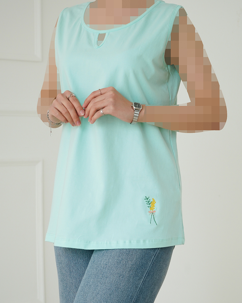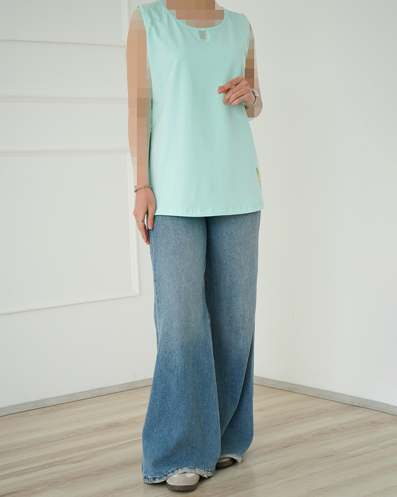 - توضیحات محصول: جنس تاپ نخ و پنبه بسیار با کیفیت می باشد. تاپ یقه گرد و استین حلقه ای می باشد. طرح روی تاپ گلدوزی می باشد. این محصول بسبار خنک و راحت همراه با کشسانی بالا مناسب استفاده روزمره می باشد.