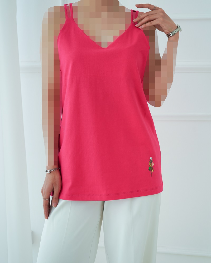 - توضیحات محصول: جنس تاپ نخ و پنبه است. تاپ یقه هفت و آستین حلقه ای می باشد. طرح روی تاپ، گلدوزی شده است.