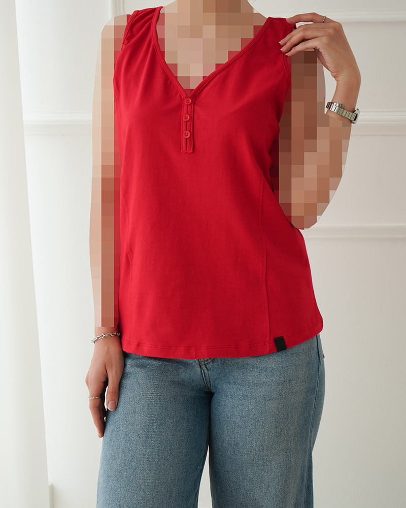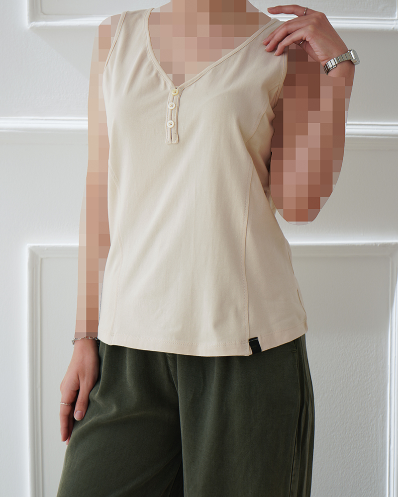 - توضیحات محصول: جنس تاپ نخ و پنبه می باشد. تاپ یقه دلبری و آستین حلقه ای و دکمه های زیر یقه نما هستند. این محصول بسیار خنک ،راحت و لطیف همراه با کشسانی بالا مناسب استفاده روزمره می باشد.