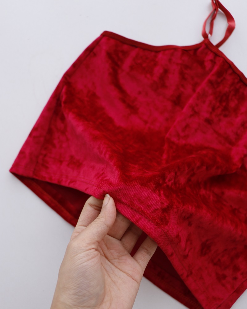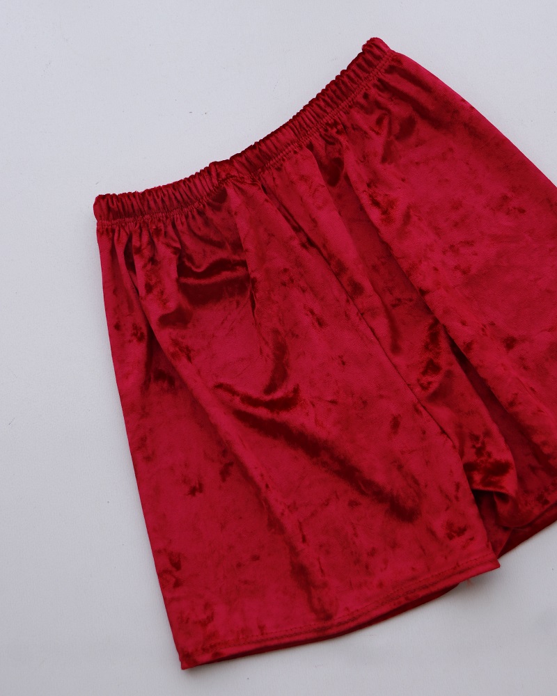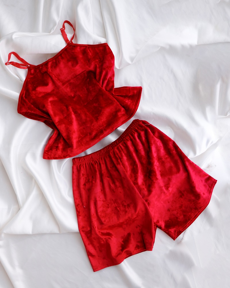 - توضیحات محصول: جنس ست، مخمل است. بند تاپ، قابل تنظیم می باشد. کمر شورتک، تمام کشی است.