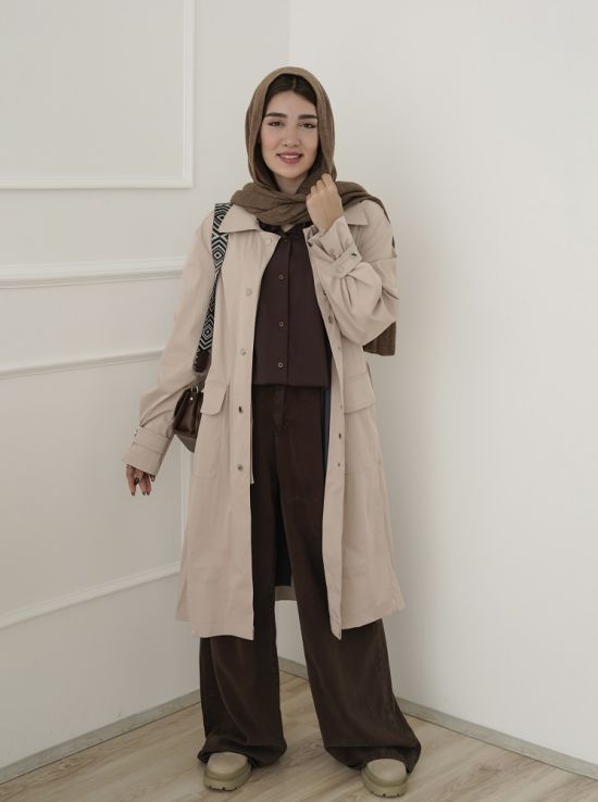 - توضیحات محصول: جنس ترنج کت کتان تی سی می باشد. ترنج کت یقه انگلیسی و فاقد آستر می باشد.