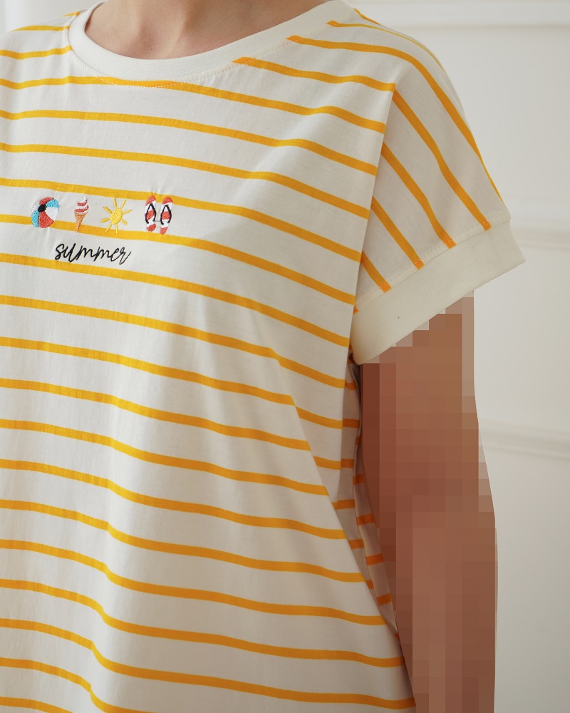 - توضیحات محصول: جنس تیشرت نخ و پنبه می باشد. تیشرت یقه گرد و آستین کوتاه می باشد. طرح های روی تیشرت گلدوزی شده است. این محصول بسیار نرم و لطیف مناسب استفاده روزمره می باشد.