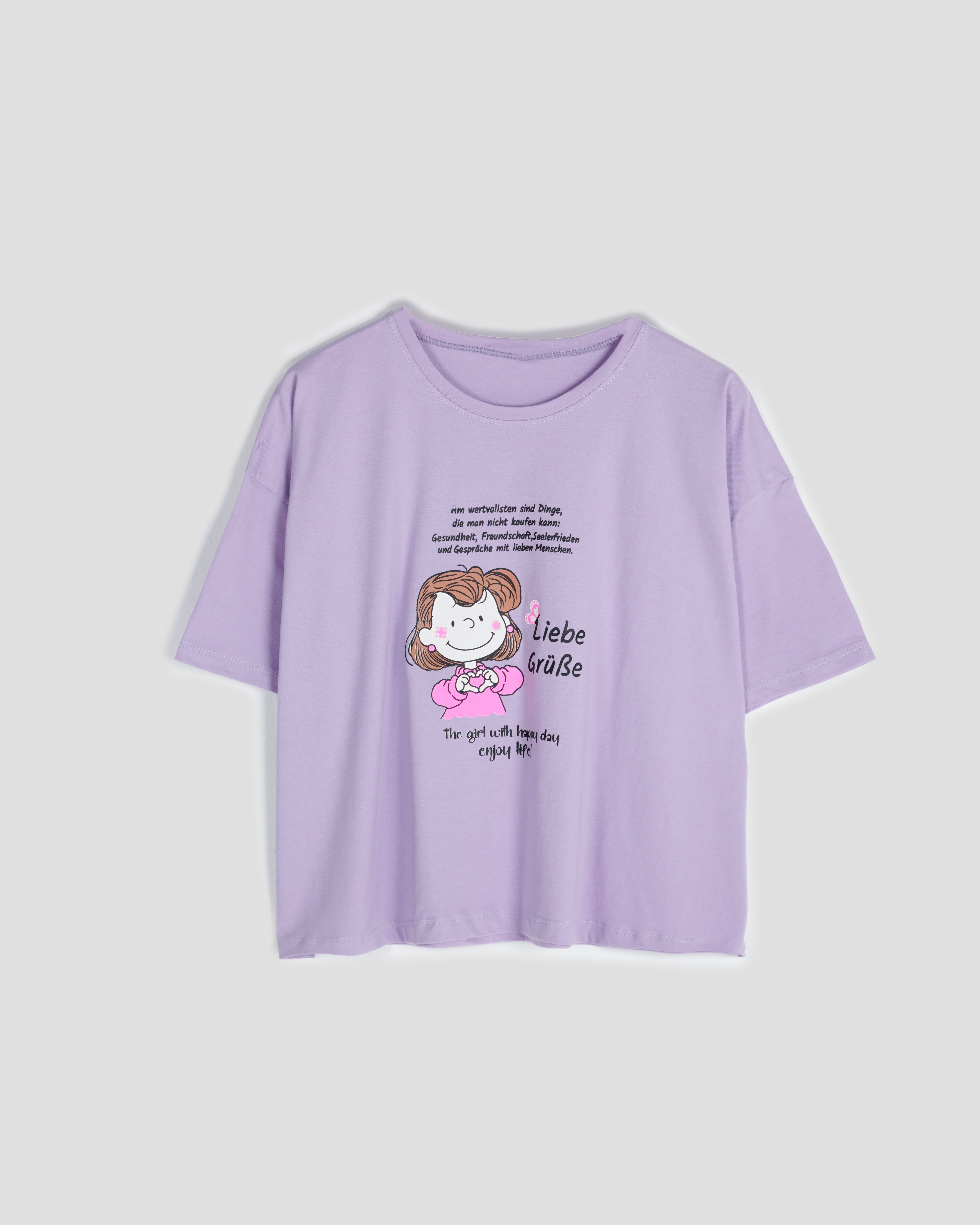 - توضیحات محصول: جنس تیشرت نخ و پنبه می باشد. تیشرت یقه گرد و آستین کوتاه می باشد. طرح های روی تیشرت چاپی است. تنخور تیشرت باکسی است. این محصول بسیار نرم و لطیف و خنک همراه با کشسانی مناسب استفاده روزمره می باشد.
