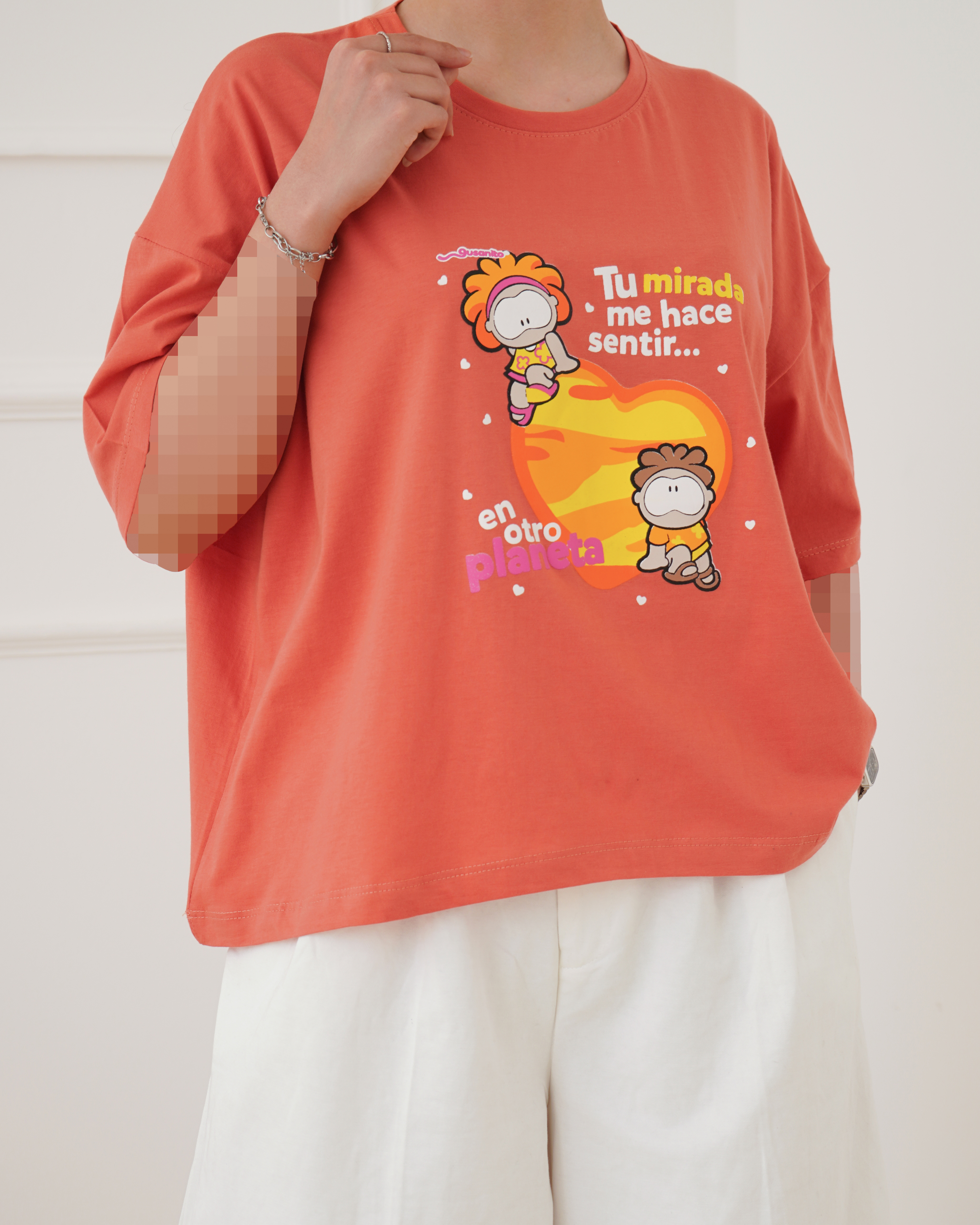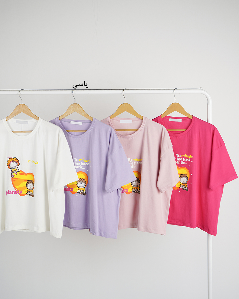 - توضیحات محصول: جنس تیشرت نخ و پنبه می باشد. تیشرت یقه گرد و آستین کوتاه می باشد. طرح های روی تیشرت چاپی است. تنخور تیشرت باکسی است. این محصول بسیار نرم و لطیف و خنک همراه با کشسانی مناسب استفاده روزمره می باشد.