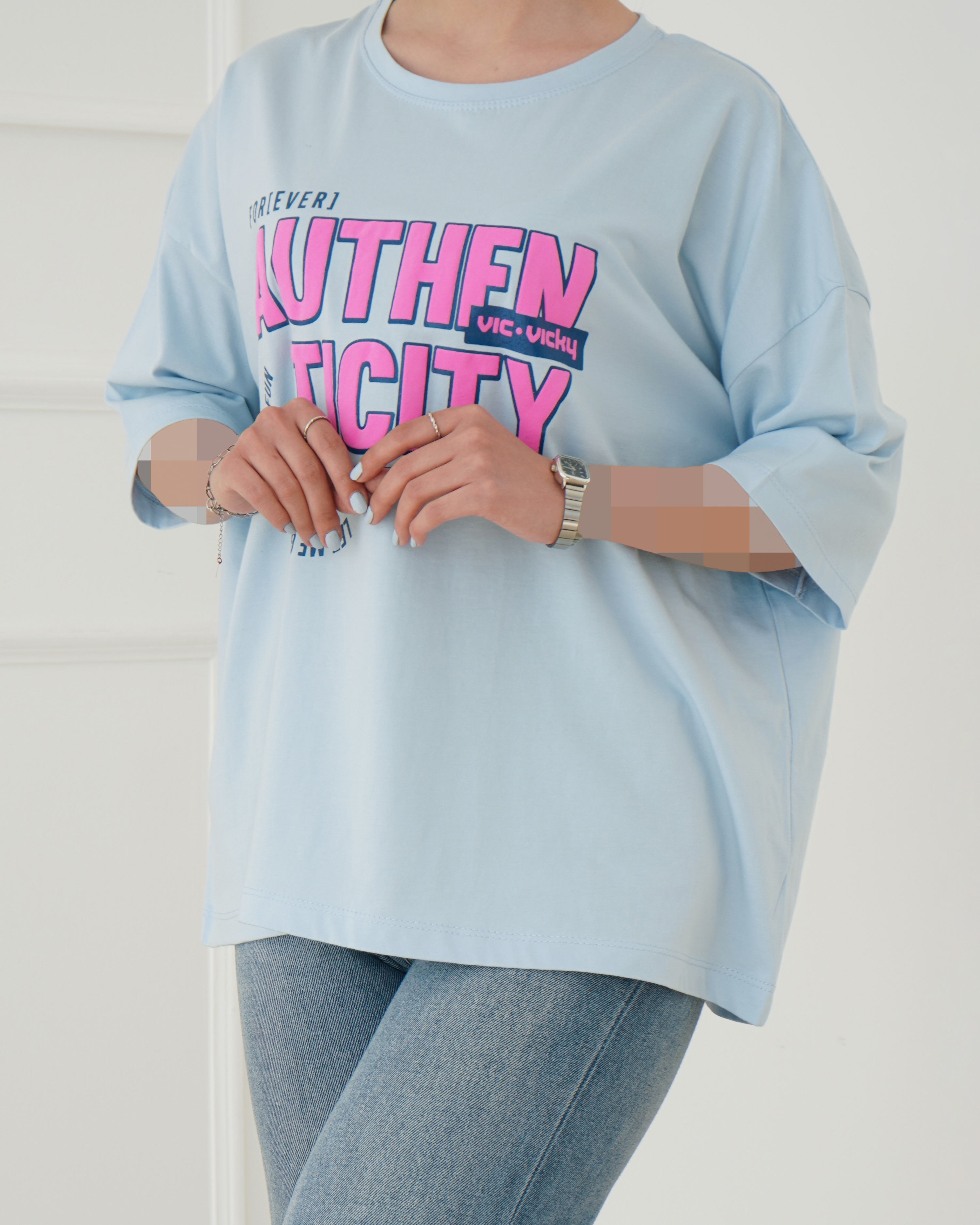- توضیحات محصول: جنس تیشرت نخ و پنبه می باشد. تیشرت یقه گرد و آستین کوتاه می باشد. طرح های روی تیشرت چاپی است. تنخور تیشرت باکسی است. این محصول بسیار نرم و لطیف و خنک همراه با کشسانی مناسب استفاده روزمره می باشد.