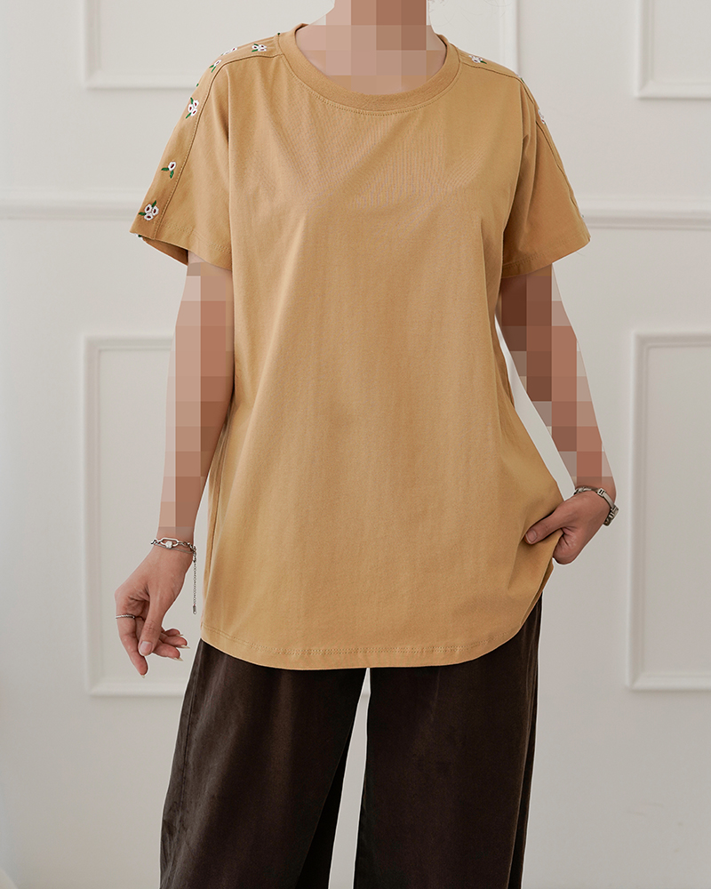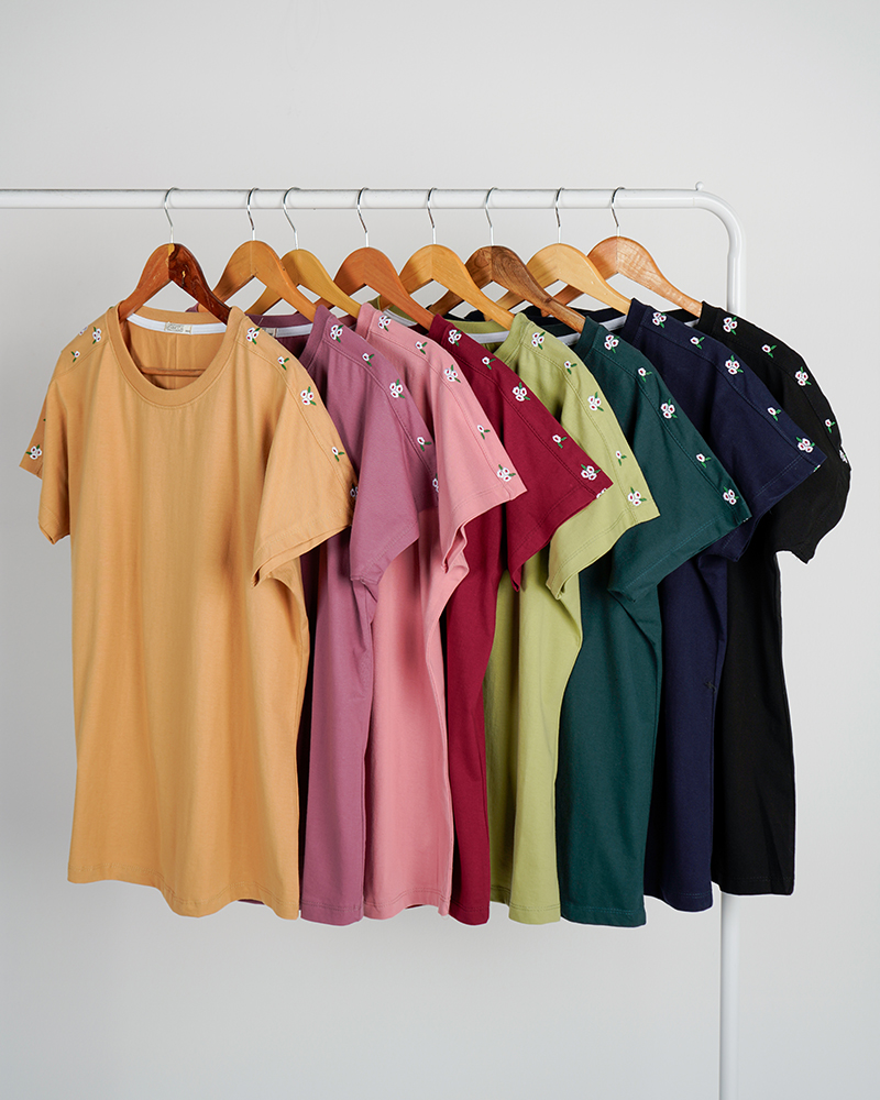 - توضیحات محصول: جنس تیشرت نخ و پنبه می باشد. تیشرت یقه گرد بوده و طرح های روی آستین گلدوزی شده می باشد. تیشرت بسیار خنک ،راحت و کاربردی مناسب استفاده روزمره می باشد.