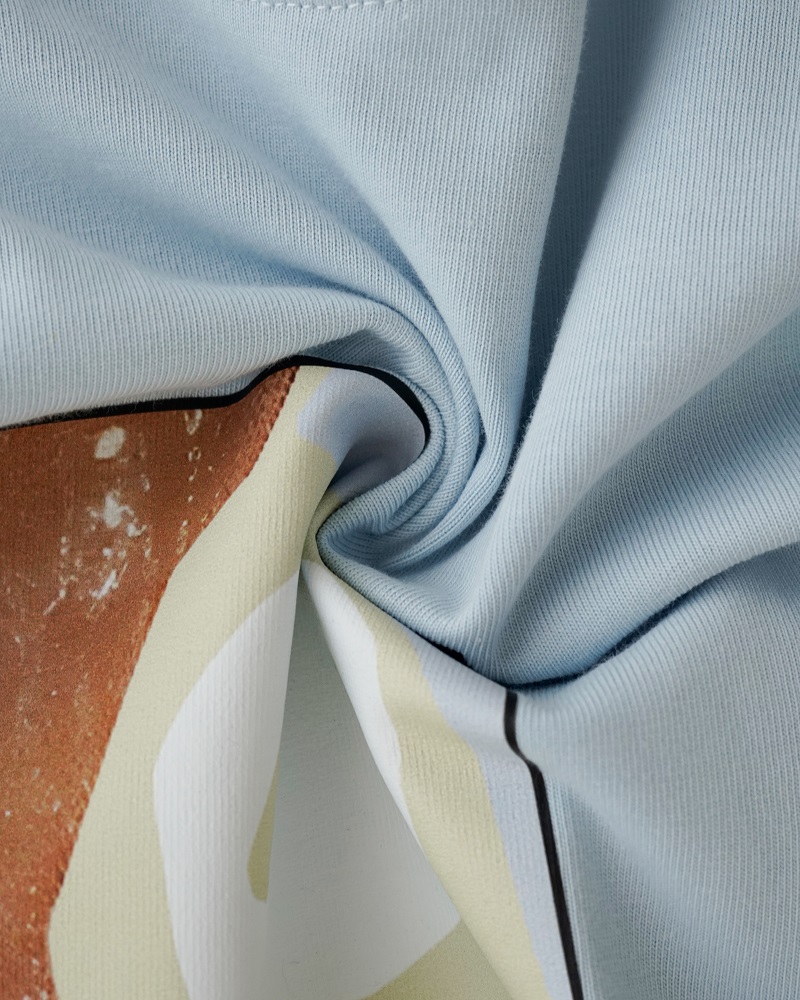 - توضیحات محصول: جنس تیشرت، پنبه ماکان می باشد. تیشرت یقه گرد است. طرح های روی تیشرت، چاپی هستند. این محصول بسیار راحت و با کیفیت مناسب استفاده روزمره است.