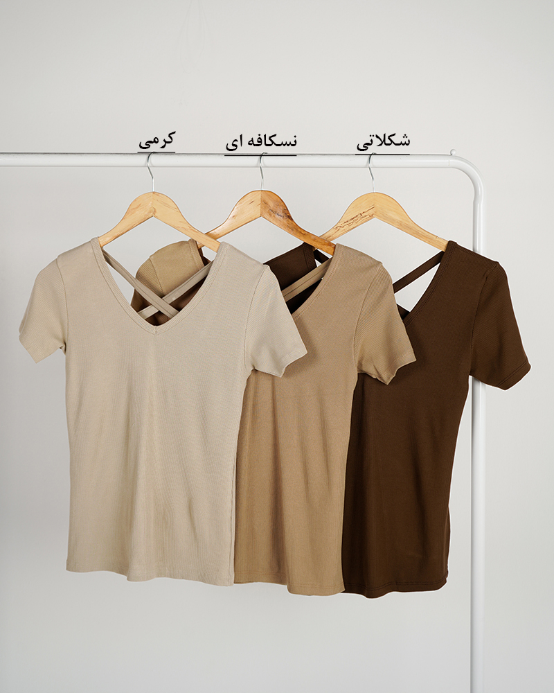 - توضیحات محصول: جنس تیشرت، فانریپ کبریتی است. تیشرت، یقه هفت و پشت ضربدری می باشد. این محصول کشسانی بالایی دارد.