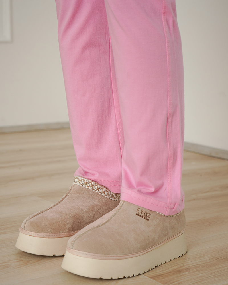 - توضیحات محصول: جنس تیشرت و شلوار نخ و پنبه می باشد. تیشرت یقه گرد و آستین کوتاه می باشد. طرح های روی ست چاپی هستند. کمر شلوار تماما کشی بوده و بند دور کمر کاربردی است.