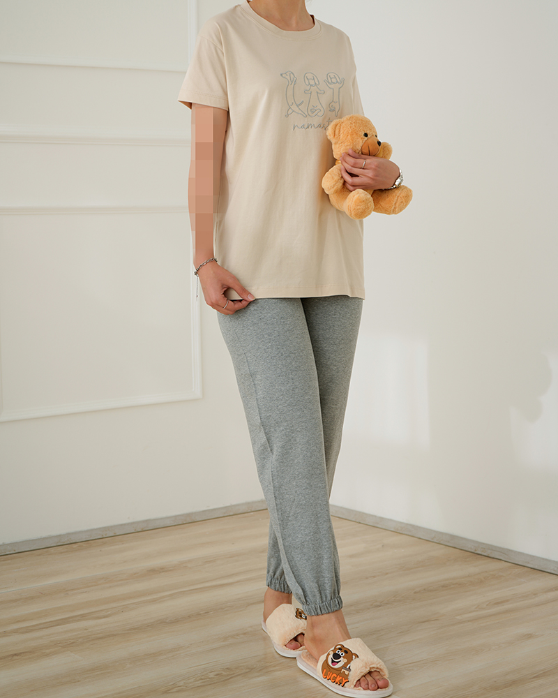 - توضیحات محصول: جنس تیشرت نخ و پنبه و جنس شلوار پنبه گلکسی می باشد. تیشرت یقه گرد و آستین کوتاه بوده و طرح های روی تیشرت گلدوزی شده می باشد. کمر شلوار تماما کشی بوده و بند دور کمر شلوار کاربردی می باشد.شلوار این محصول دمپا کشی(جاگر) می باشد.