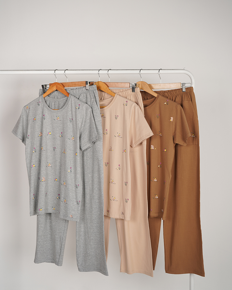 - توضیحات محصول: جنس تیشرت نخ و پنبه می باشد. تیشرت یقه گرد و طرح های روی ست چاپی می باشد. کمر شلوار تماما کشی است.