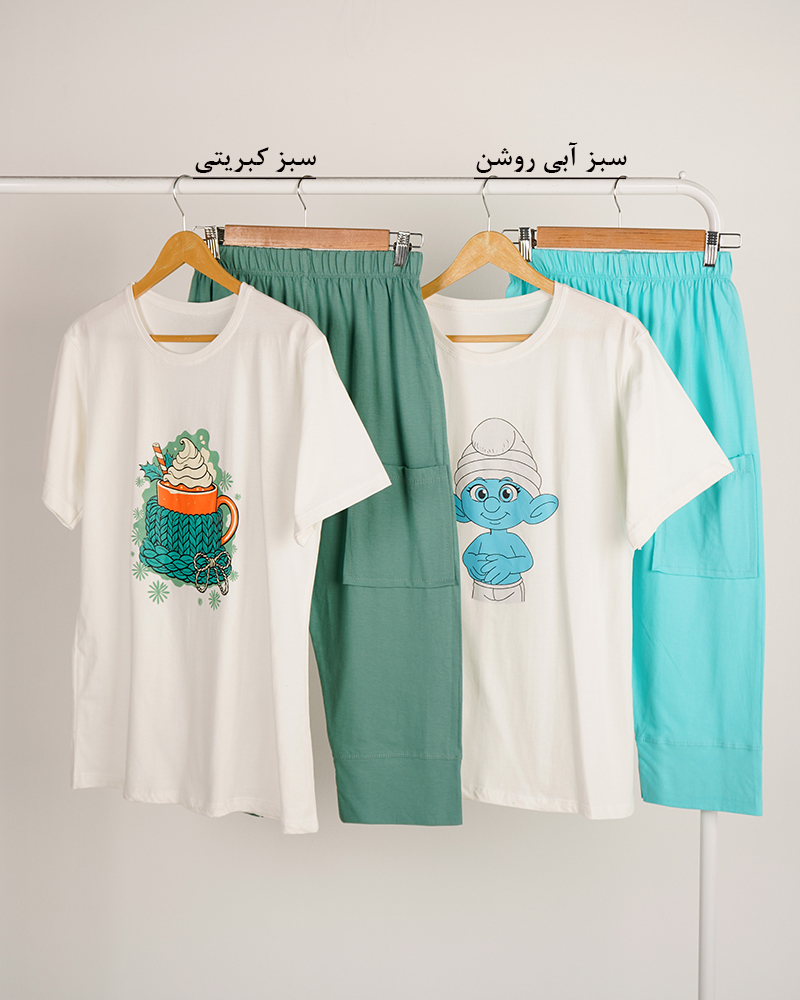 - توضیحات محصول: جنس تیشرت شلوارک نخ و پنبه می باشد. طرح های روی ست چاپی می باشد. تیشرت یقه گرد می باشد. کمر شلوارک تماما کشی می باشد. این محصول بسیار نرم و لطیف و با کشسانی بالا مناسب استفاده روزانه در منزل ،مهمانی ،باشگاه و ... است.