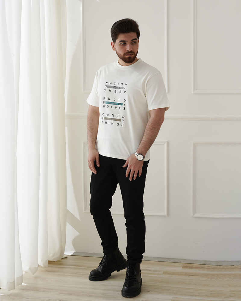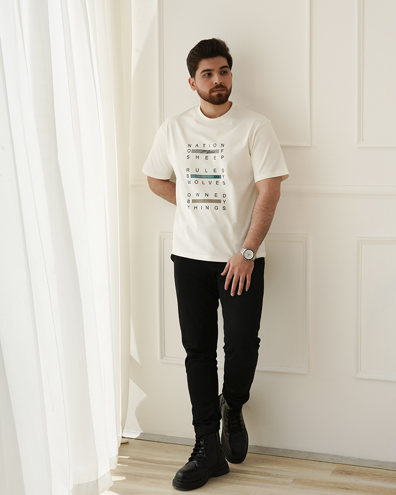 - توضیحات محصول: جنس تیشرت، پنبه ماکان می باشد. تیشرت یقه گرد است. طرح های روی تیشرت، چاپی هستند. این محصول بسیار راحت و با کیفیت مناسب استفاده روزمره است.