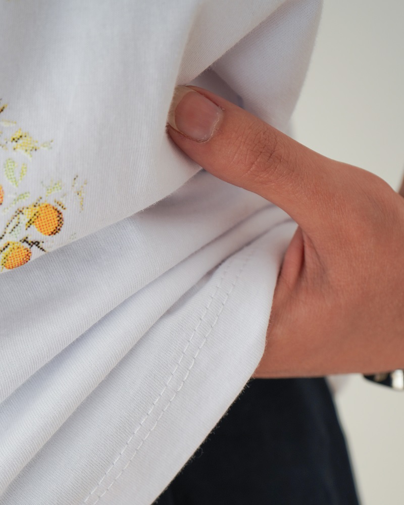 - توضیحات محصول: جنس تیشرت نخ و پنبه می باشد. طرح های روی تیشرت چاپی است. این محصول بسیار نرم و لطیف و خنک همراه با کشسانی مناسب استفاده روزمره می باشد.
