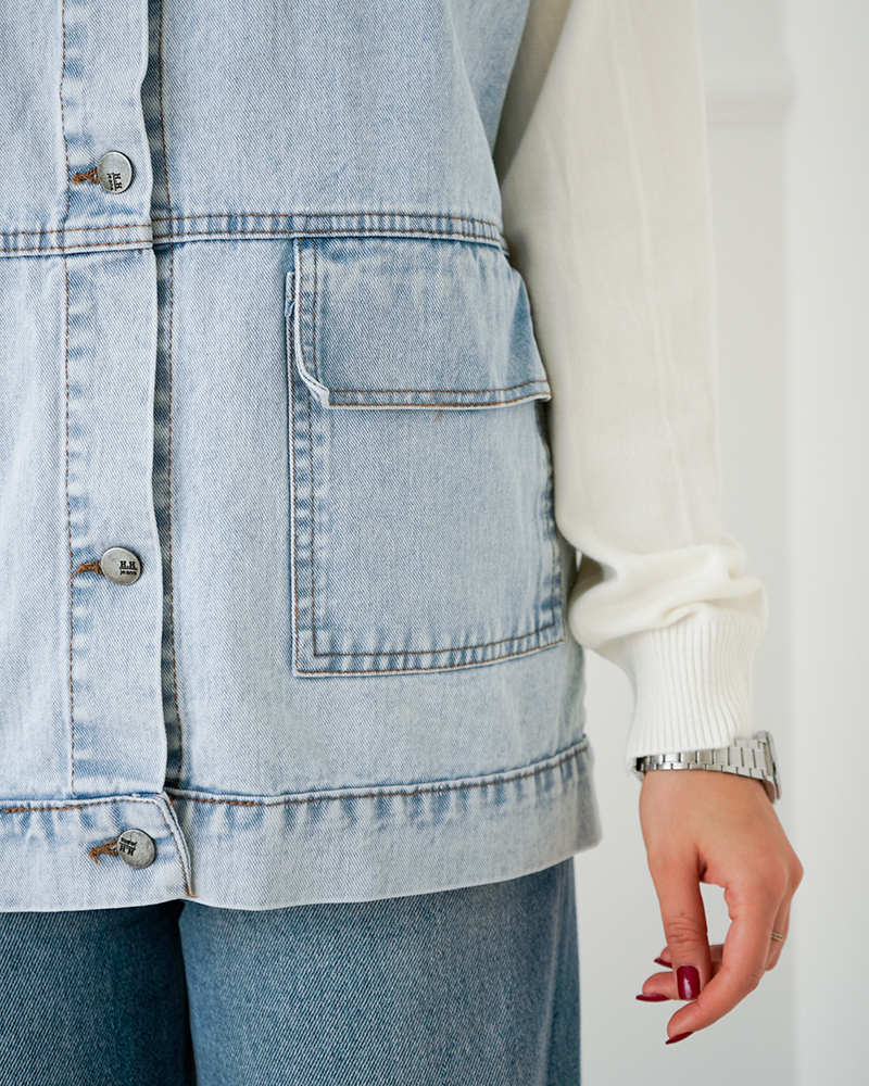- توضیحات محصول: جنس وست جین می باشد. وست آستین حلقه ای و دارای دو جیب کاربردی می باشد. این محصول یقه مردانه بوده و دارای دکمه های کاربردی است. وست بسیار با کیفیت مناسب استفاده روزمره می باشد.