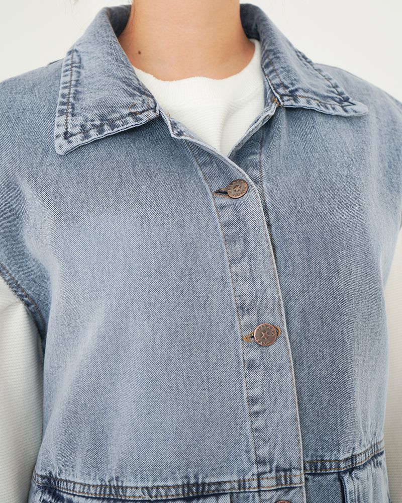 - توضیحات محصول: جنس وست جین می باشد. وست آستین حلقه ای و جیب ها نما هستند. این محصول یقه مردانه بوده و دارای دکمه های کاربردی است. وست بسیار با کیفیت مناسب استفاده روزمره می باشد.
