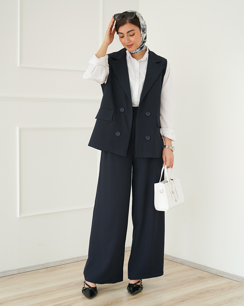 - توضیحات محصول: جنس وست جناقی می باشد. وست یقه انگلیسی و قسمت جلو وست جهت ایستایی بهتر آستر کشی شده است. دکمه ها و جیب های وست نما هستند.