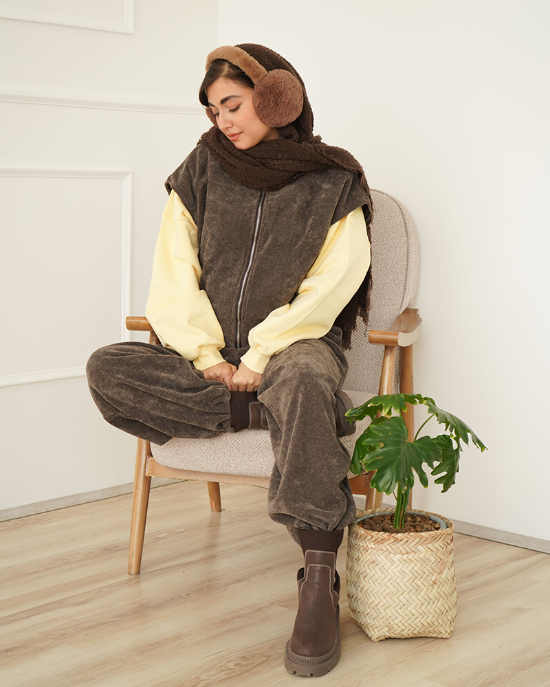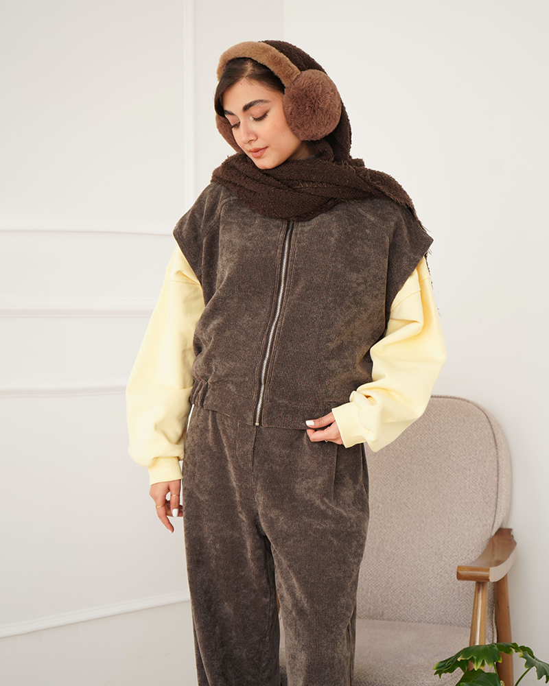 - توضیحات محصول: جنس ست مخمل کبریتی می باشد. وست جلو زیپی و کمر کش می باشد. کمر شلوار پشت کشی و تنخور شلوار بگ می باشد. وست آستر کشی شده است.
