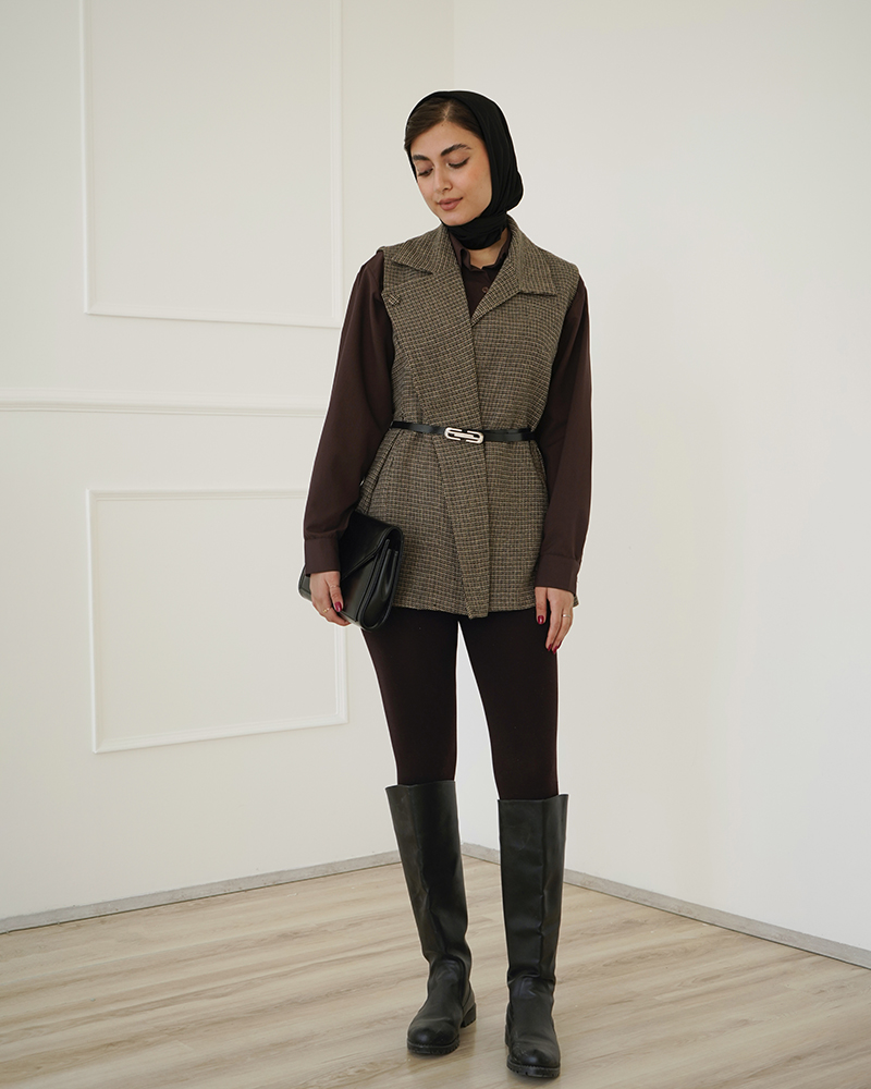 - توضیحات محصول: جنس وست شنل می باشد. وست یقه انگلیسی و دارای یک دکمه مخفی می باشد. این محصول دارای یکم کمربند چرم به ابعاد 106*1 می باشد.