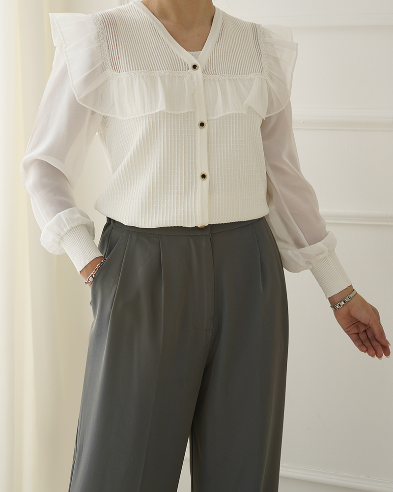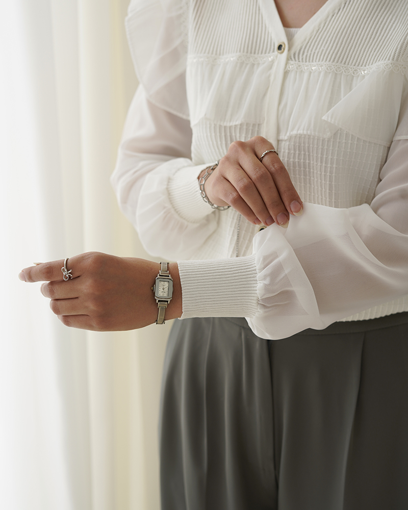 - توضیحات محصول: جنس بلوز بافت و جنس آستین ها حریر می باشد. بلوز یقه هفت بوده و دکمه ها کاربردی می باشد. این محصول بدن نما است.