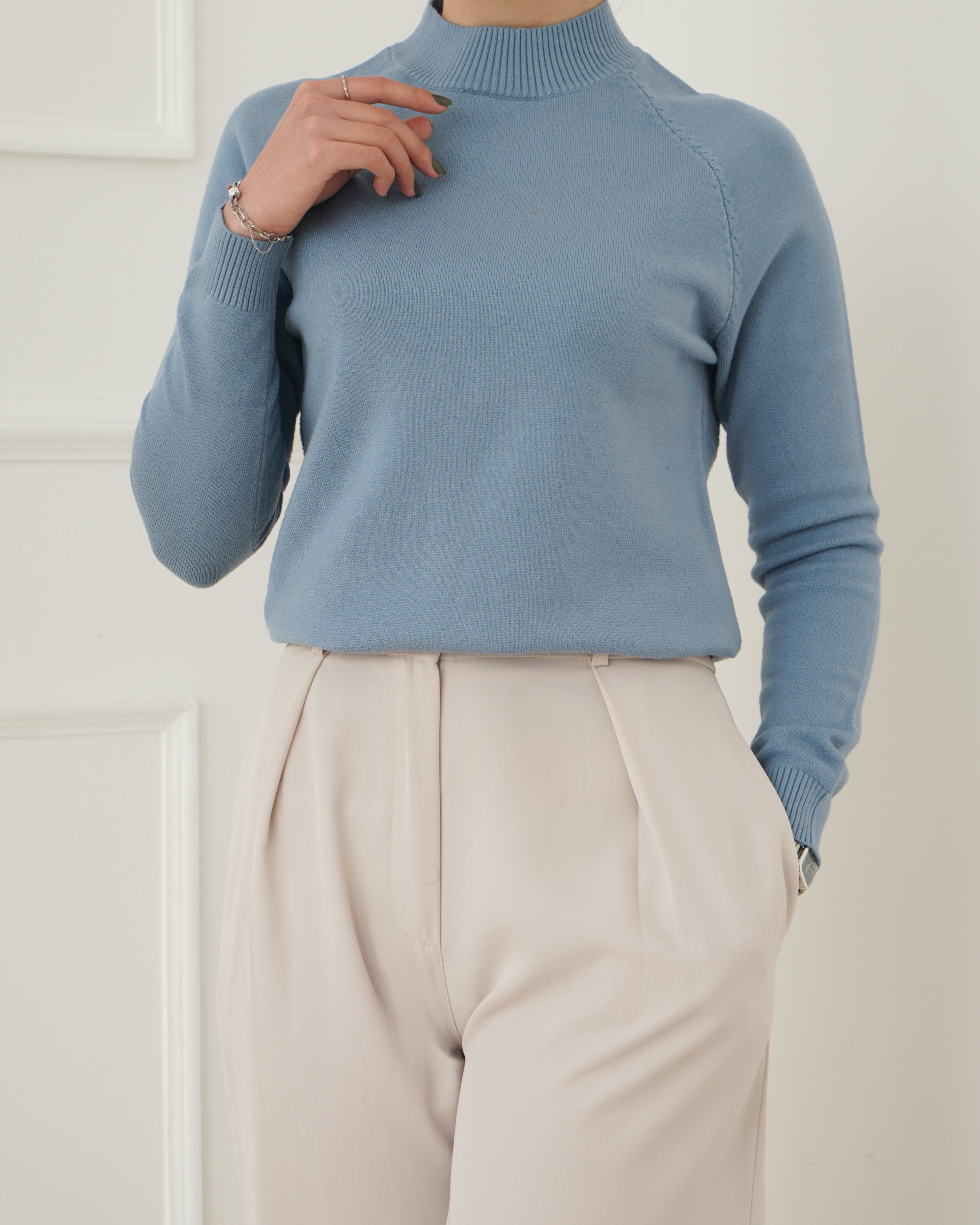 - توضیحات محصول: جنس بلوز بافت لطیف گرم بالا می باشد. بلوز یقه ایستاده و آستین بلند است. این محصول بسیار لطیف همراه با کشسانی بسیار بالا مناسب استفاده روزمره است.