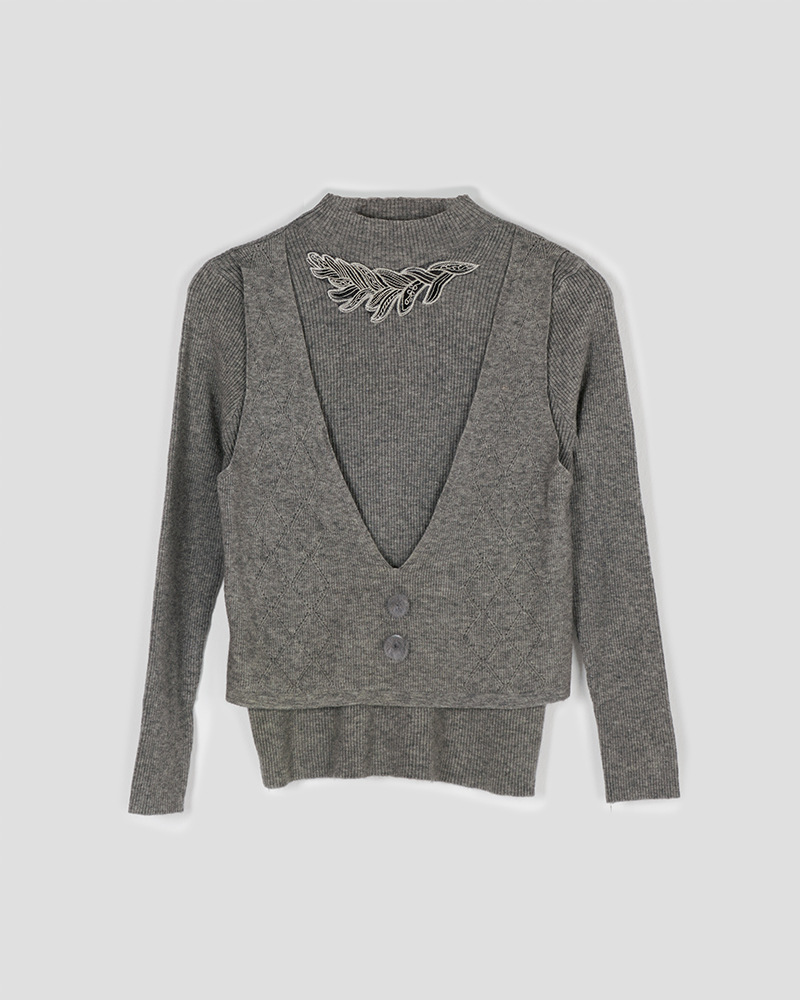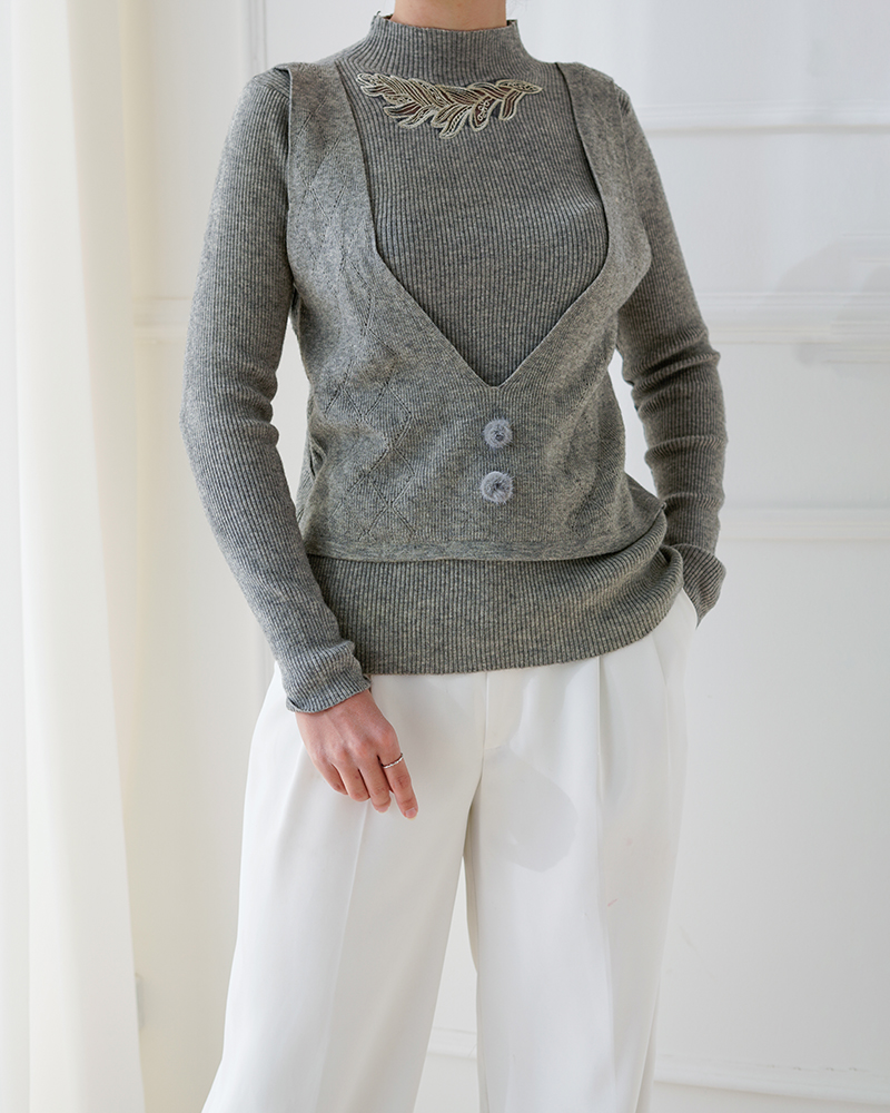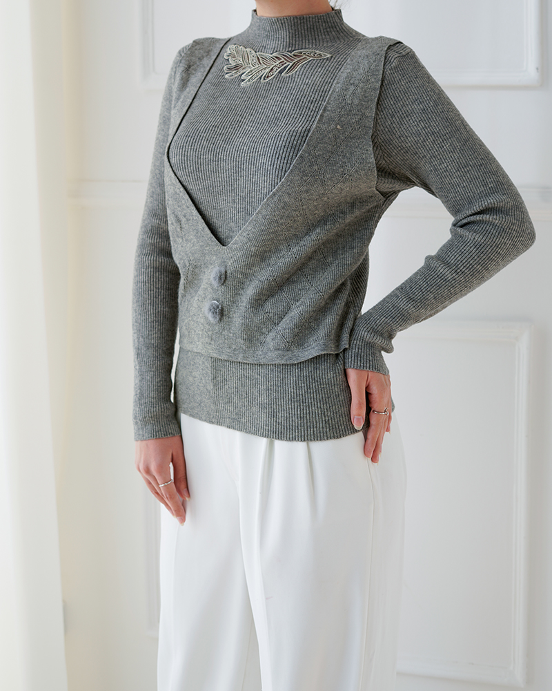 - توضیحات محصول: جنس بلوز بافت لطیف می باشد. بلوز یقه ایستاده و آستین بلند است. این محصول بسیار لطیف همراه با کشسانی بالا مناسب استفاده روزمره می باشد.جلیقه روی بلوز متصل بوده و دکمه های جلیقه نما هستند.