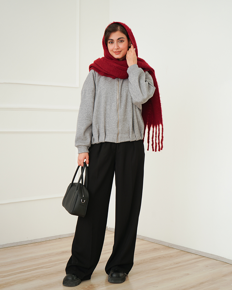 - توضیحات محصول: جنس بامبر سایه بافت پشت پلار می باشد. بامبر یقه شکاری ،جلو زیپی و دور کمر بامبر کشی می باشد.