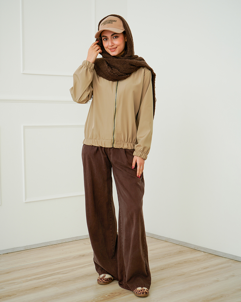 - توضیحات محصول: جنس بامبر سانتانا می باشد. بامبر یقه ایستاده و فاقد آستر است. دور کمر و سر آستین این محصول کشی می باشد. جلو بامبر زیپی بوده و این محصول بسیار خوش دوخت و کاربردی مناسب استفاده روزمره است.
