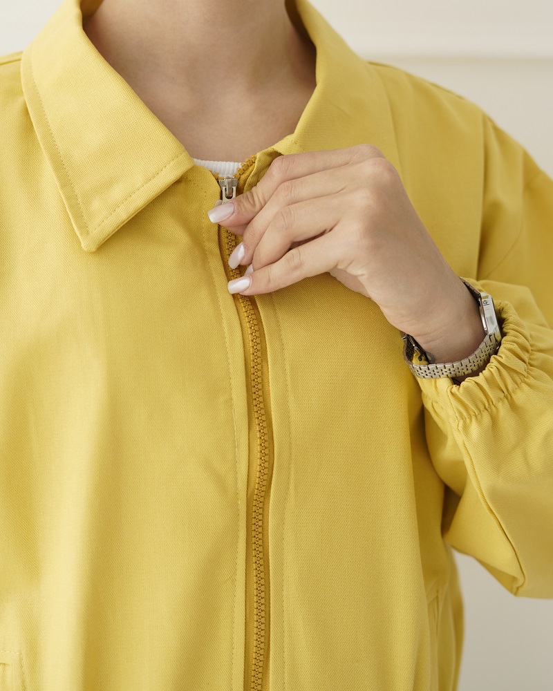 - توضیحات محصول: جنس بامبر کتان می باشد. بامبر یقه مردانه و آستین بلند است. کمر بامبر کشی است. بامبر جلو زیپی و دارای جیب های کاربردی است.