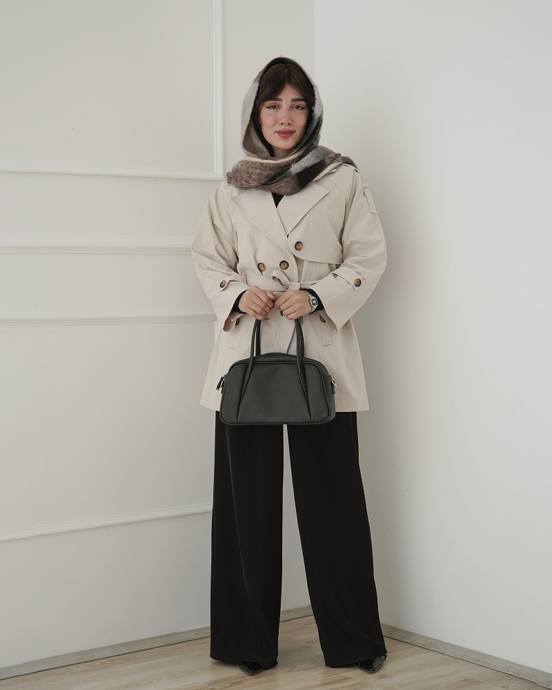 - توضیحات محصول: جنس بارونی کجراه می باشد. بارونی یقه انگلیسی است. این محصول دارای دو جیب کاربردی و یک کمربند از جنس لباس می باشد.