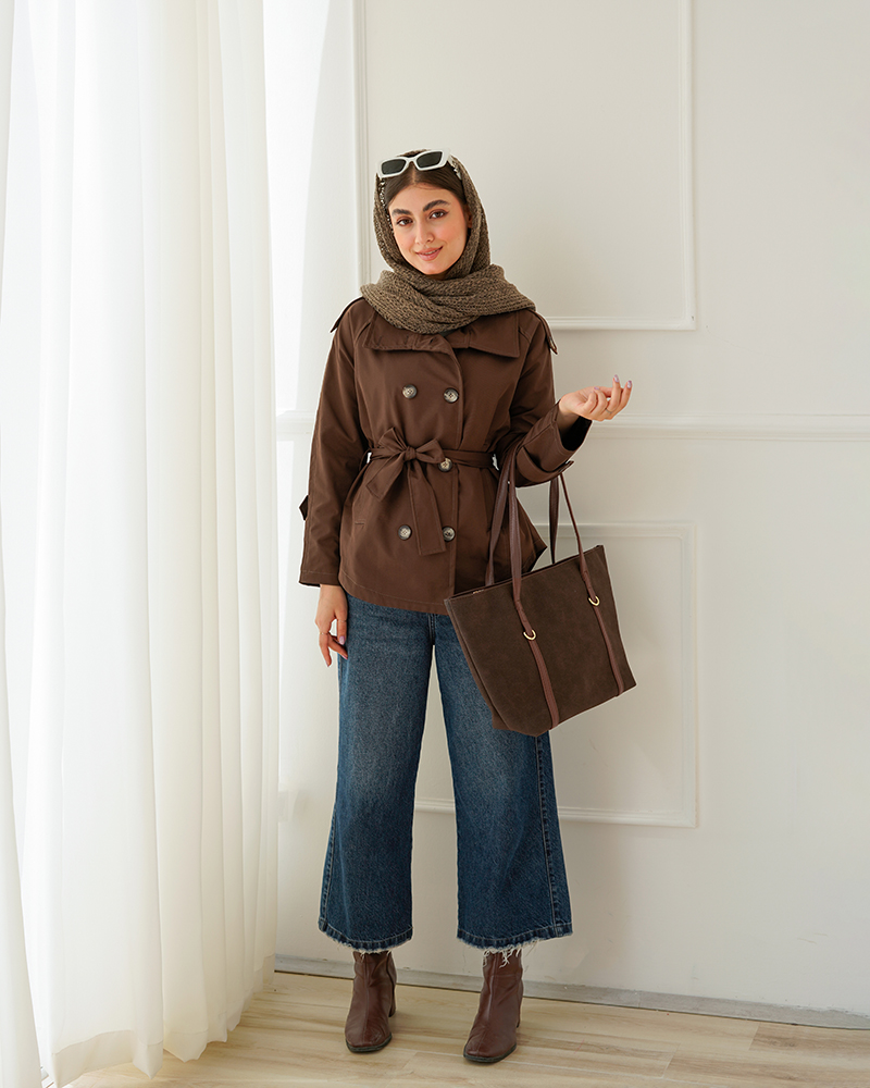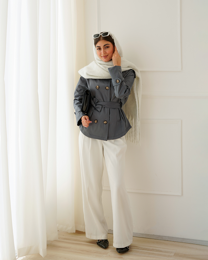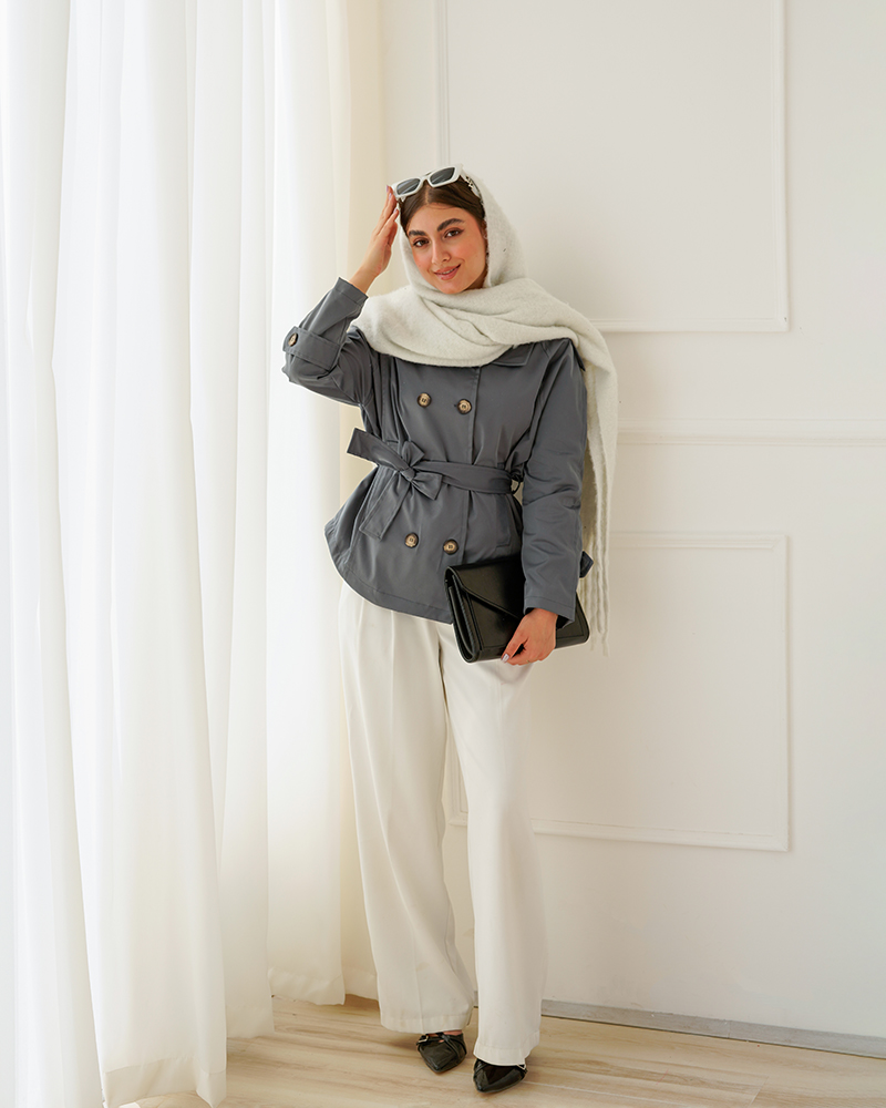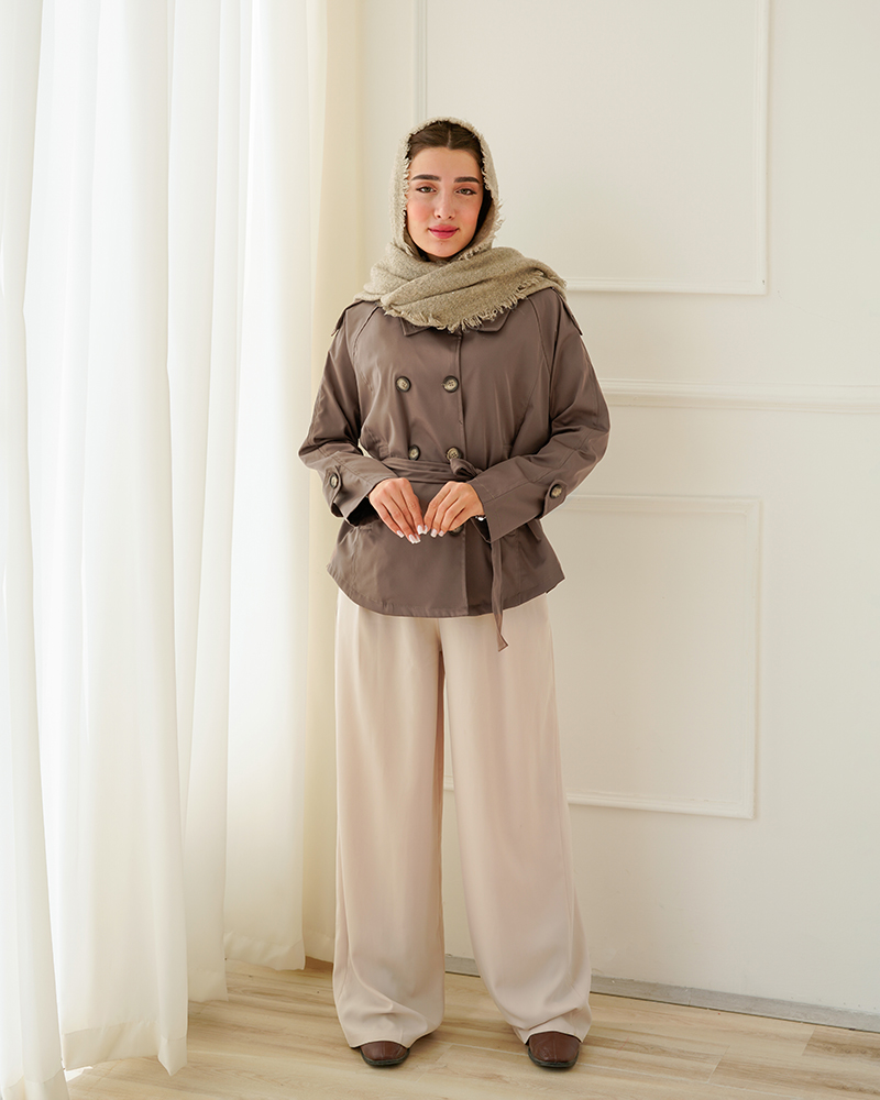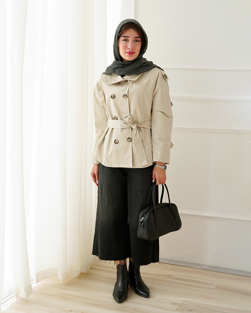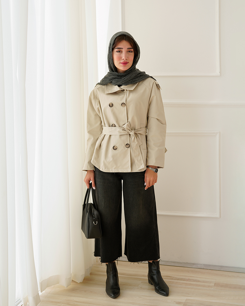 - توضیحات محصول: جنس بارانی سانتانا می باشد. بارانی یقه مردانه و جلو دکمه است. این محصول دارای دکمه ها و جیب های کاربردی می باشد. بارانی دارای یک کمربند از جنس لباس می باشد.