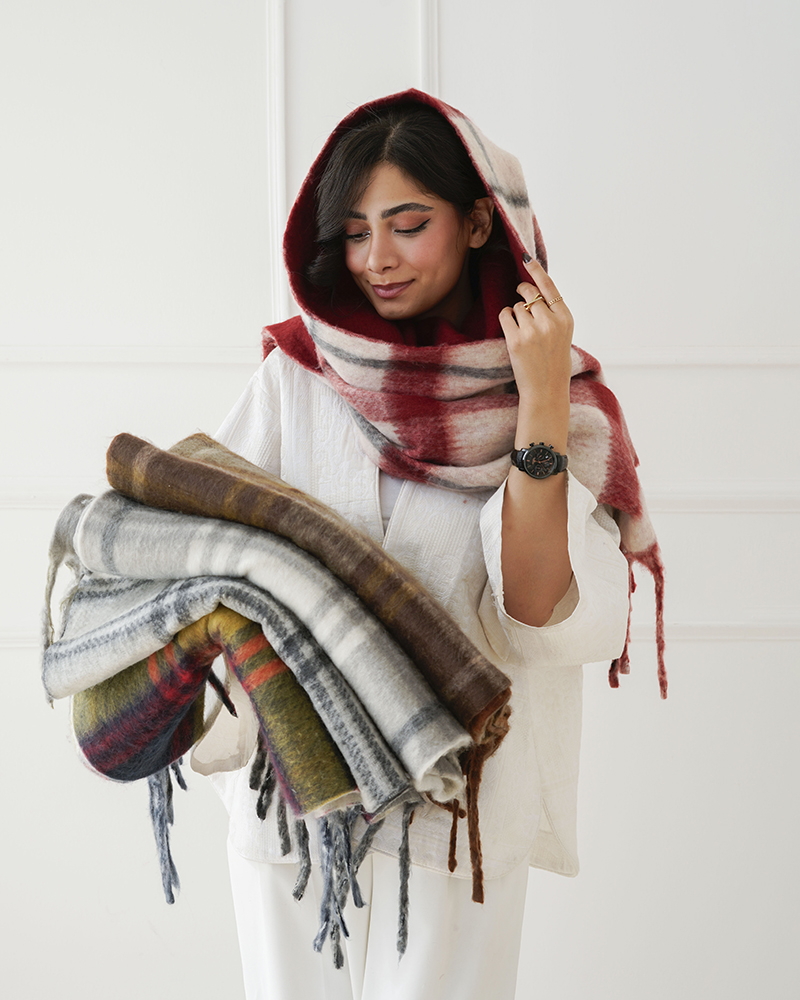 - توضیحات محصول: جنس بیگ اسکارف موهر پشمی می باشد. این محصول دو رو می باشد. ابعاد بیگ اسکارف 174*48 می باشد.