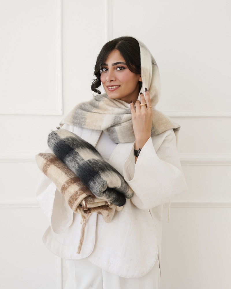 - توضیحات محصول: جنس بیگ اسکارف موهر پشمی می باشد. ابعاد بیگ اسکارف 41*210 است.