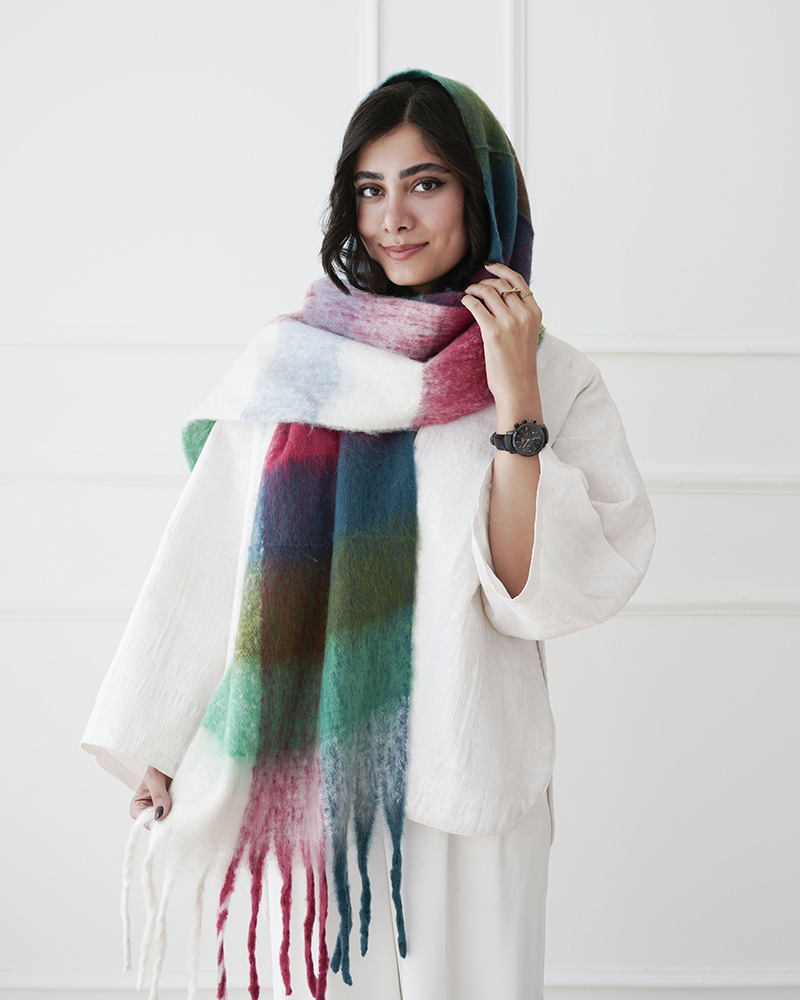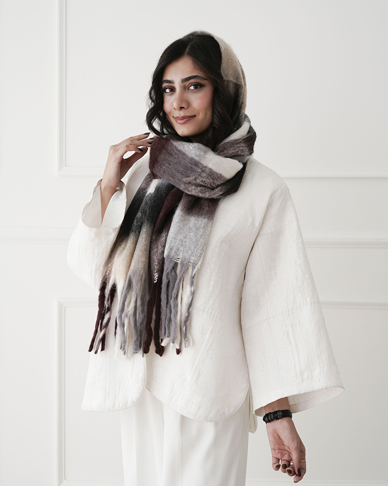 - توضیحات محصول: جنس بیگ اسکارف پشمی می باشد. ابعاد بیگ اسکارف 38*210 می باشد.