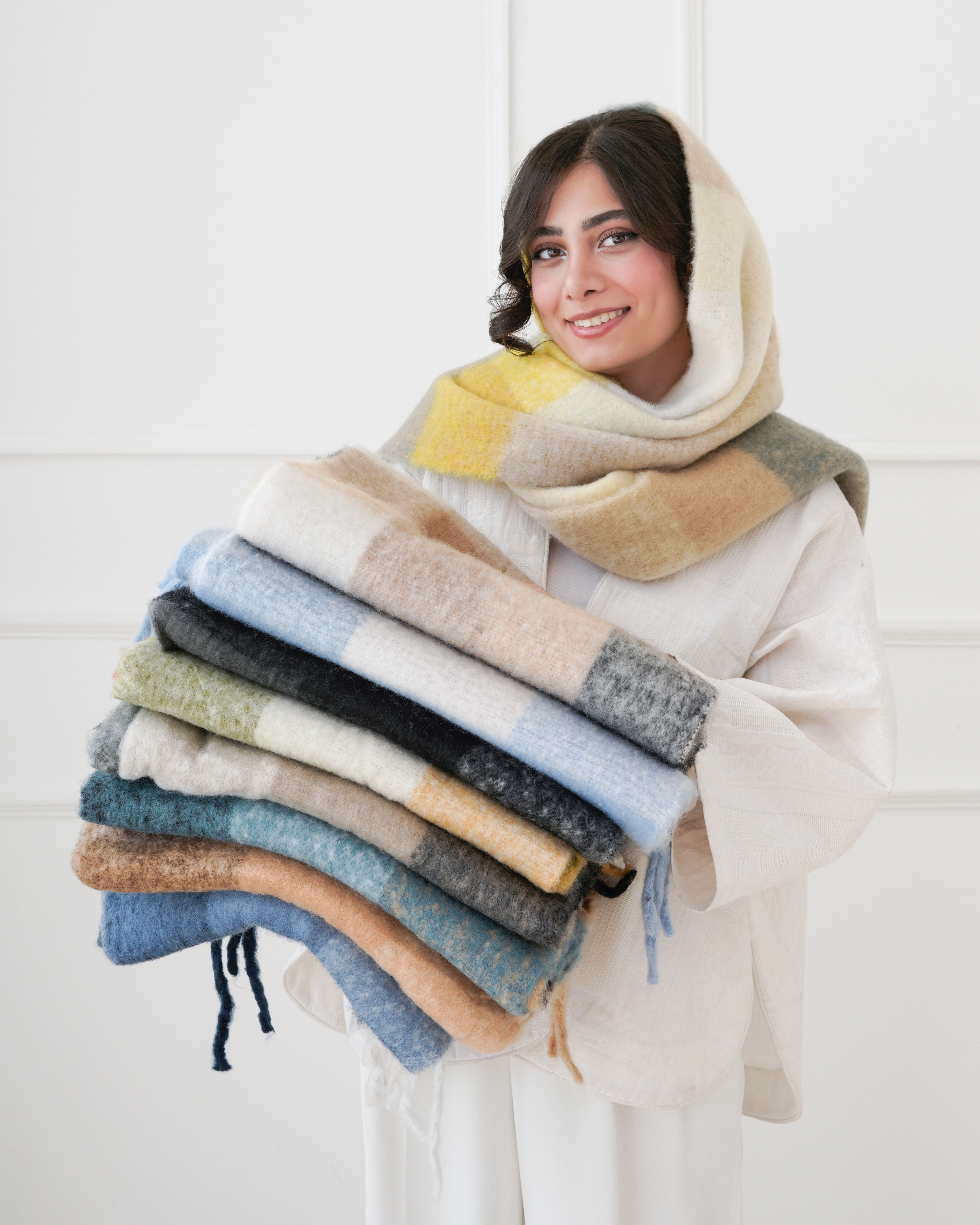 - توضیحات محصول: جنس بیگ اسکارف موهر پشمی می باشد. ابعاد بیگ اسکارف 43*210 می باشد.