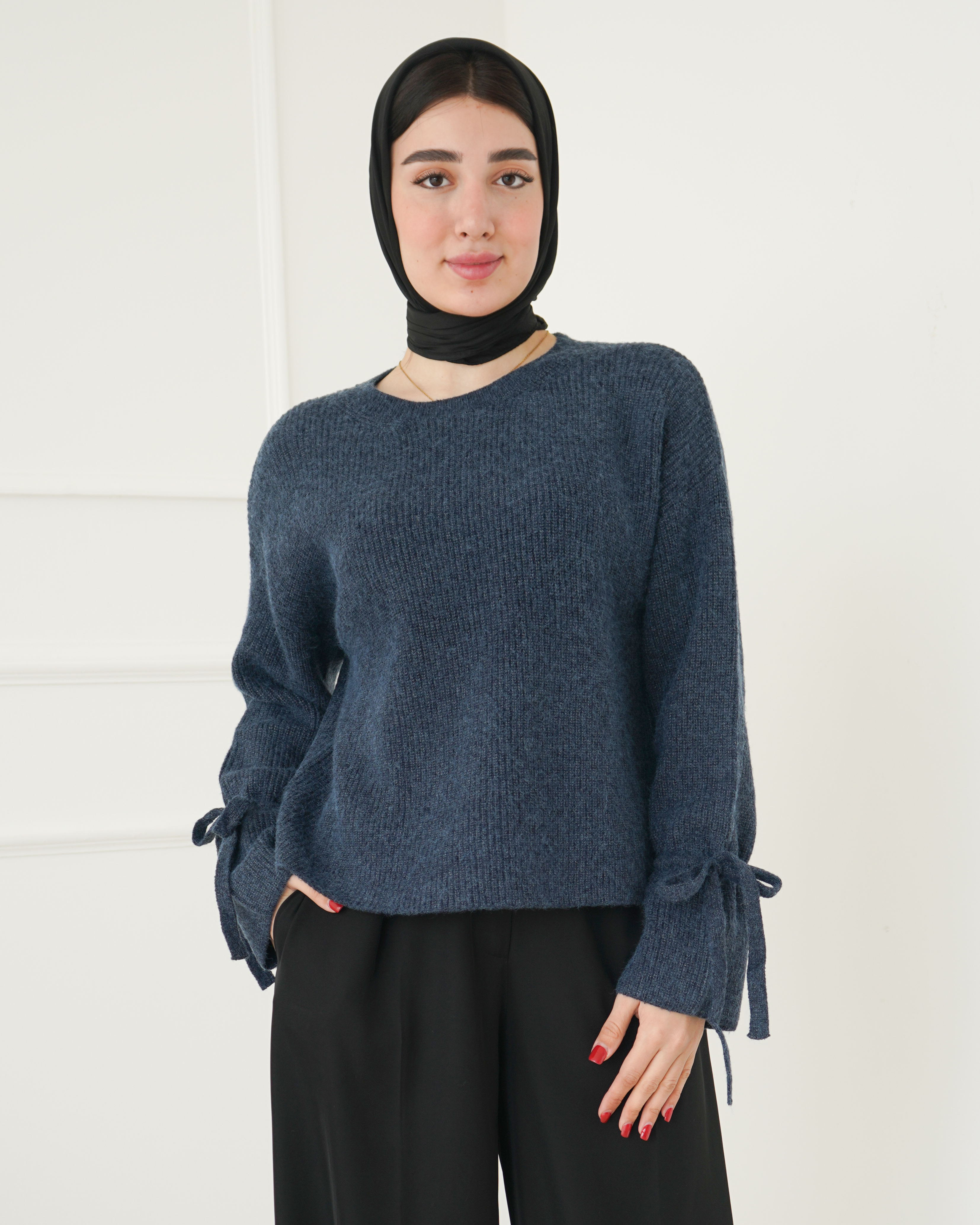 - توضیحات محصول: جنس بلوز، بافت پشمی است. بلوز، یقه گرد و آستین بلند می باشد. این محصول کشسانی بالایی دارد.