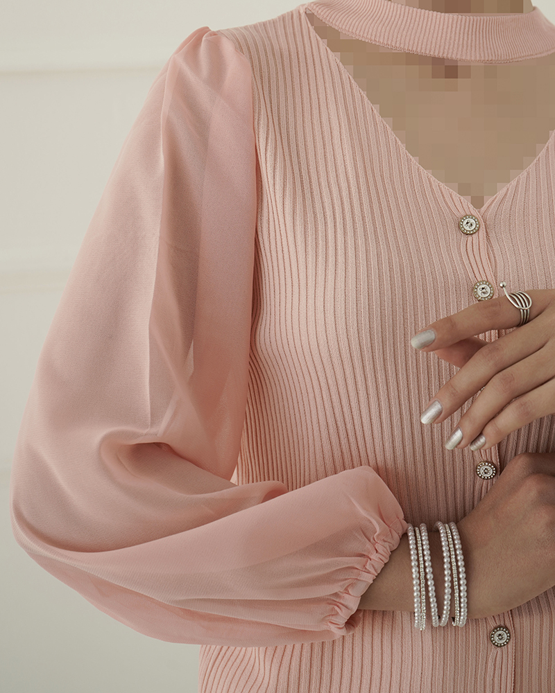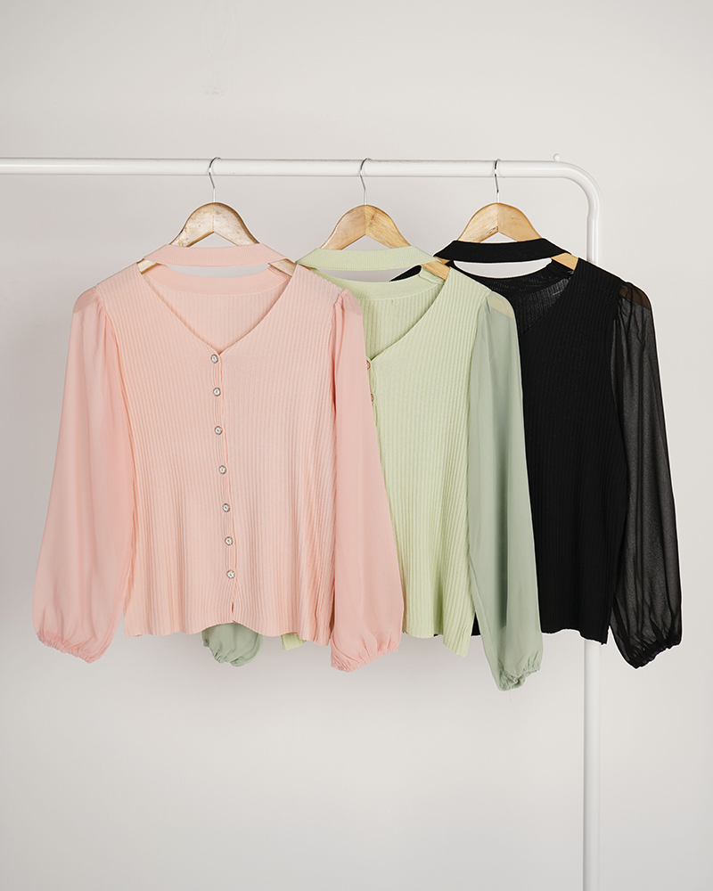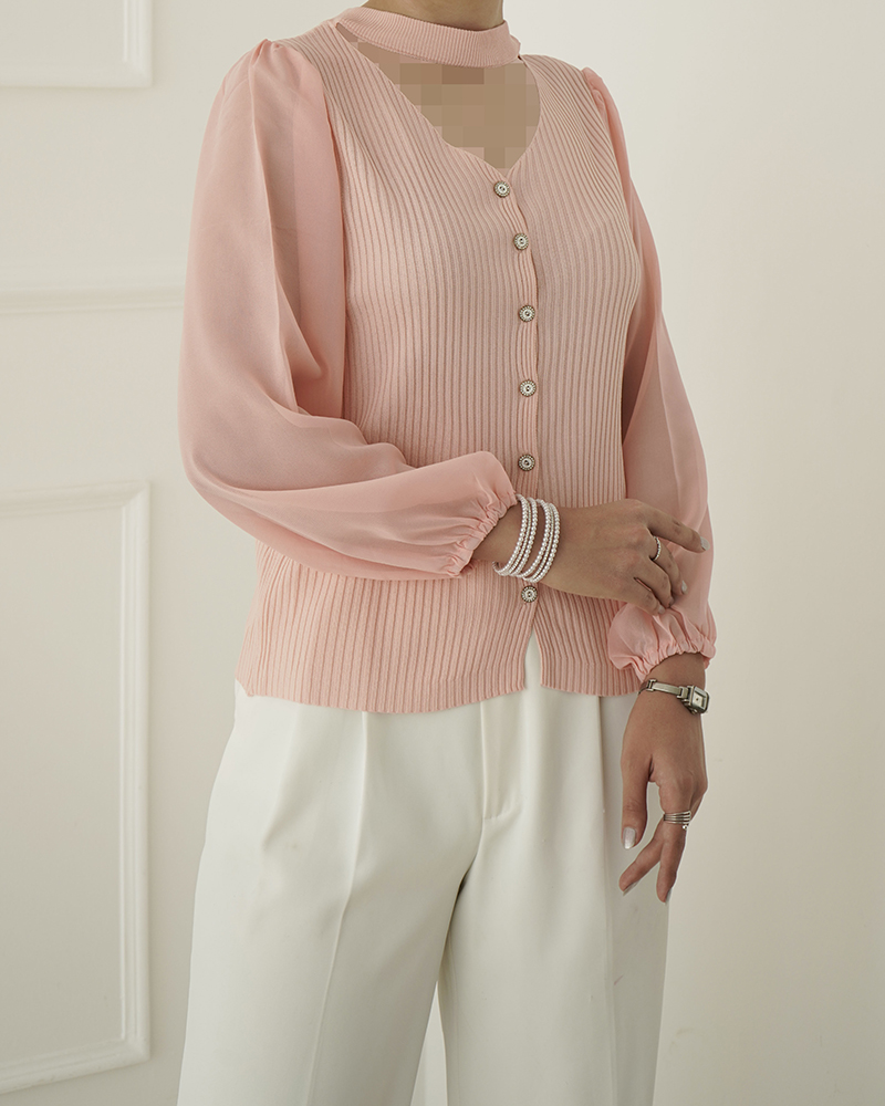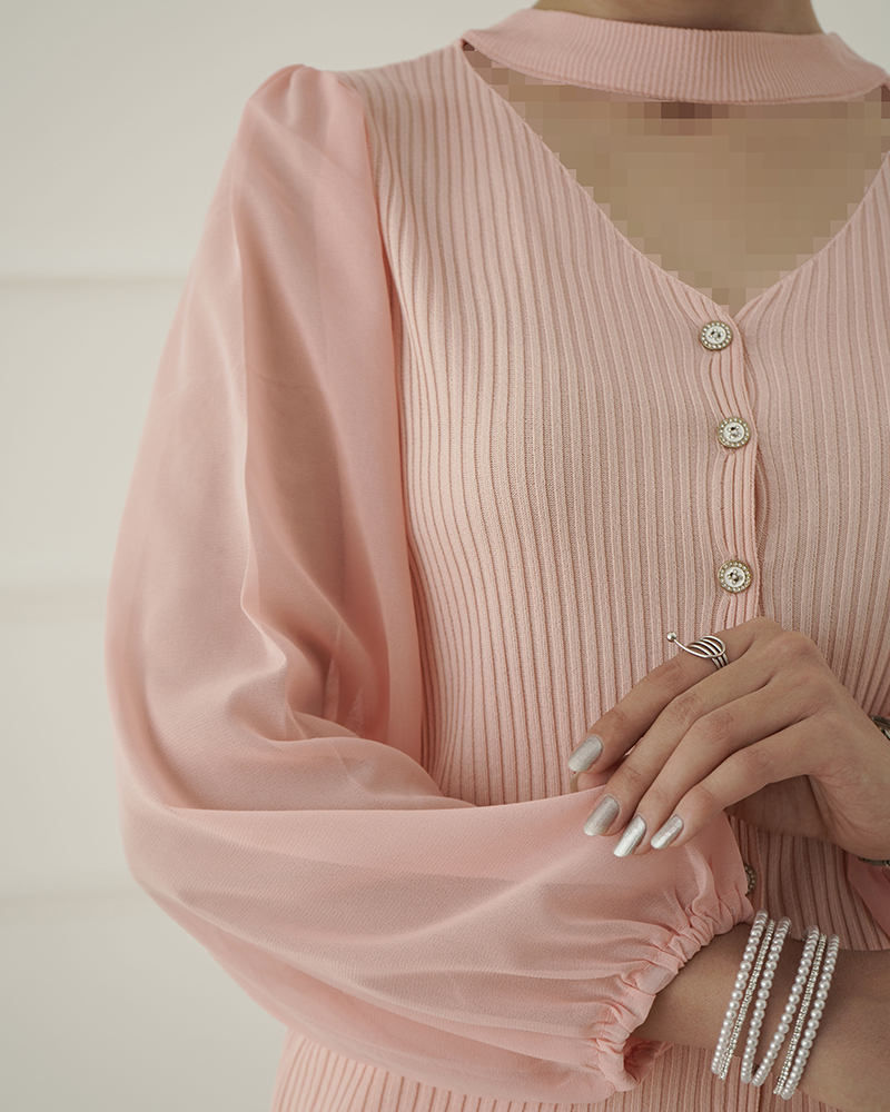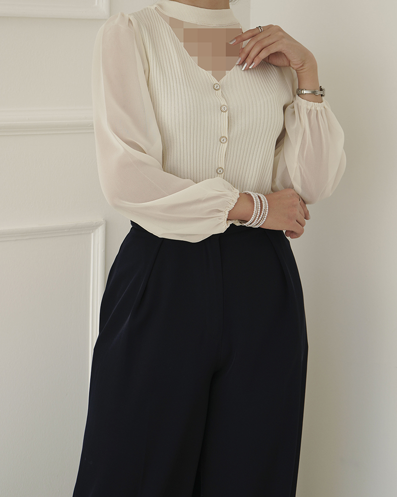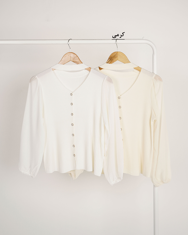 - توضیحات محصول: جنس بلوز ترکیبی از بافت و حریر می باشد. بلو یقه گرد ،آستین بلند و دارای دکمه های کاربردی است.