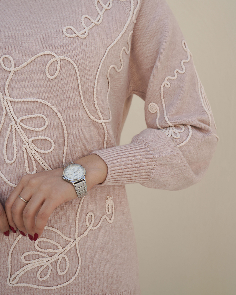 - توضیحات محصول: جنس بلوز بافت می باشد. بلوز گرم بالا و یقه گرد می باشد. طرح روی بلوز اپلیکه طنابی می باشد. این محصول بسیار با کیفیت و گرم مناسب استفاده روزمره می باشد.