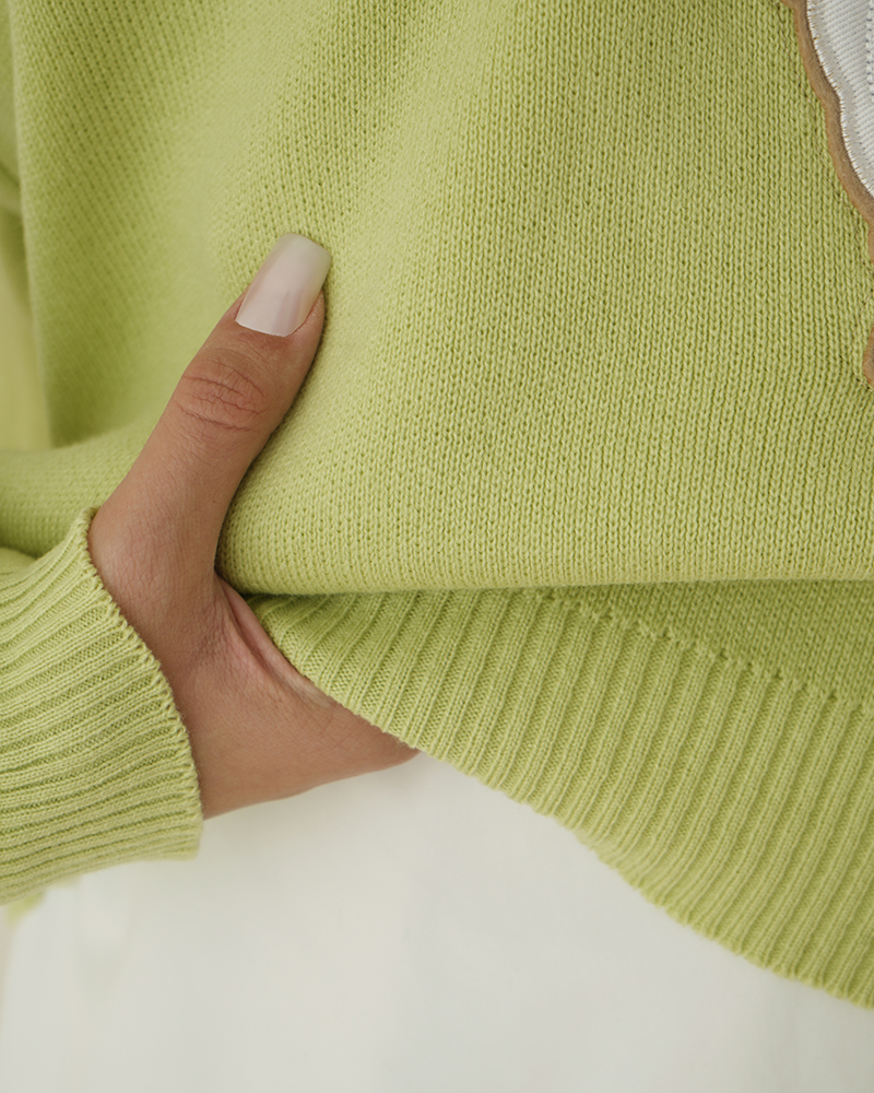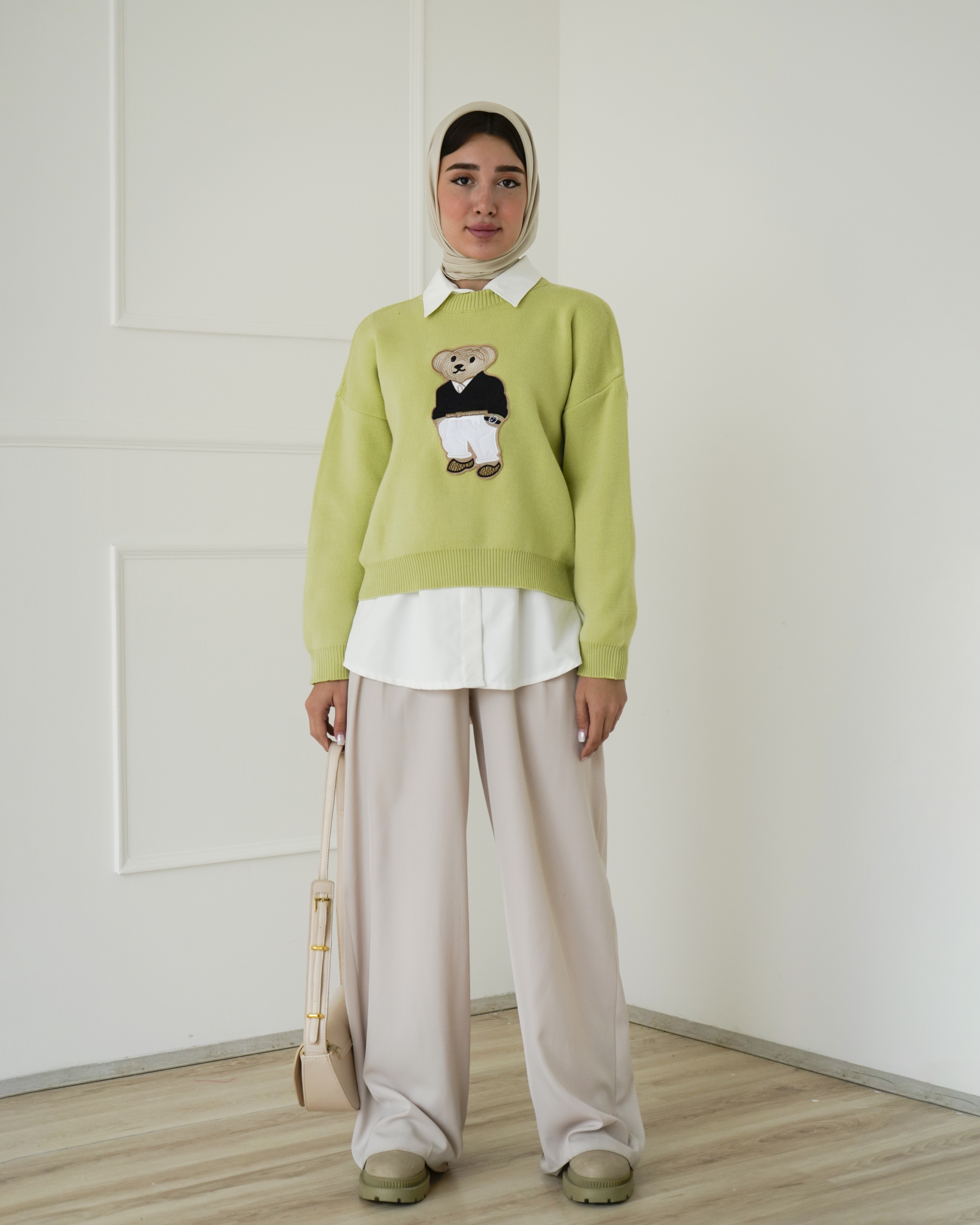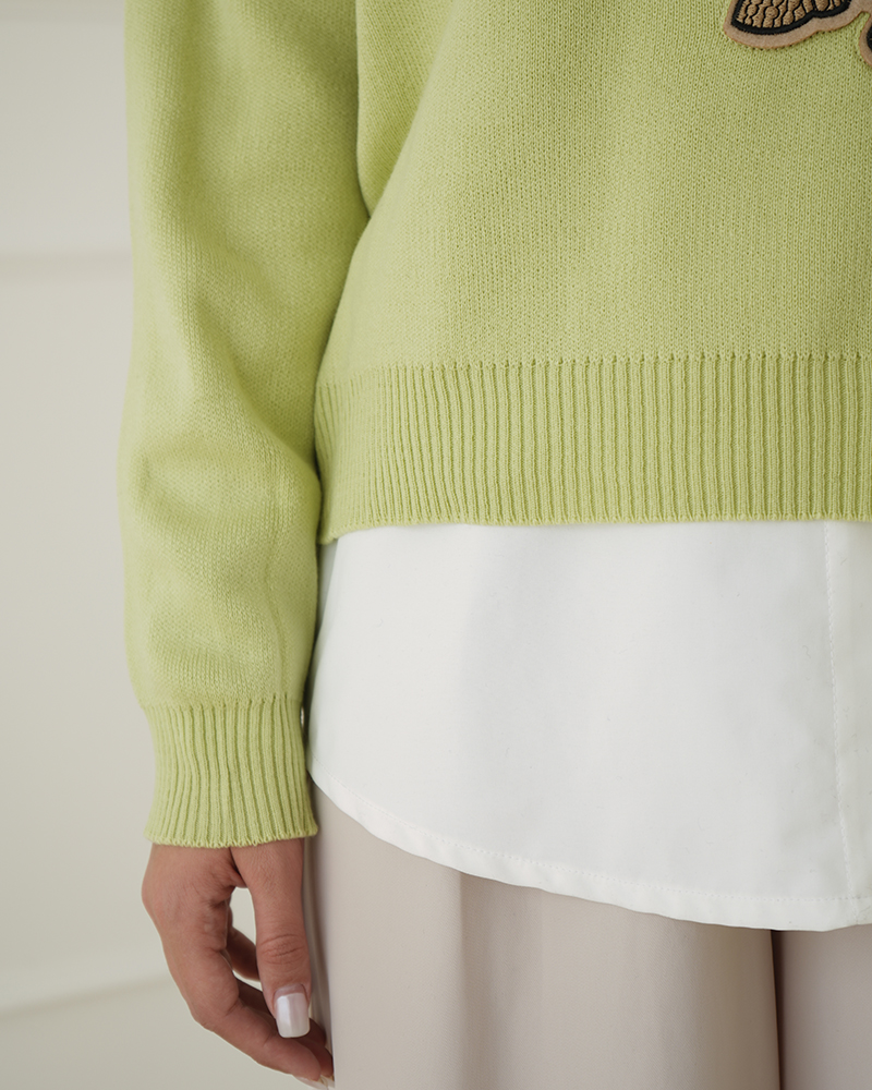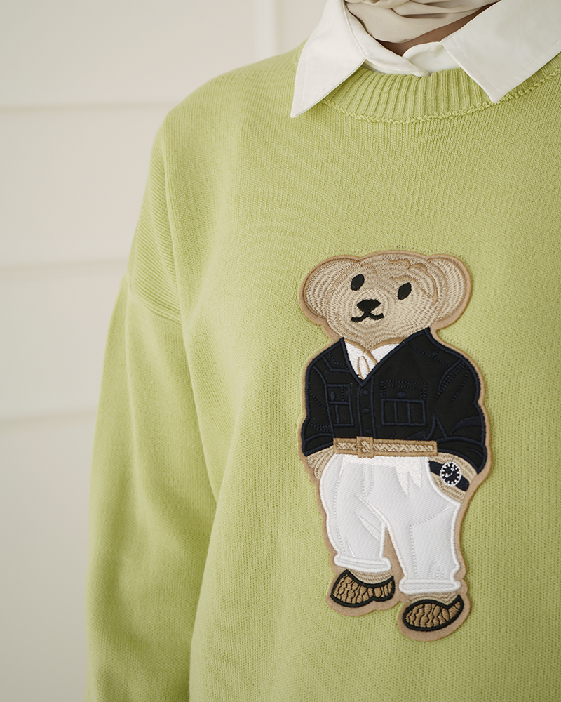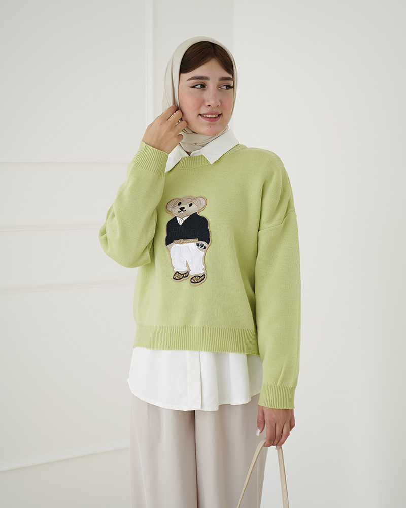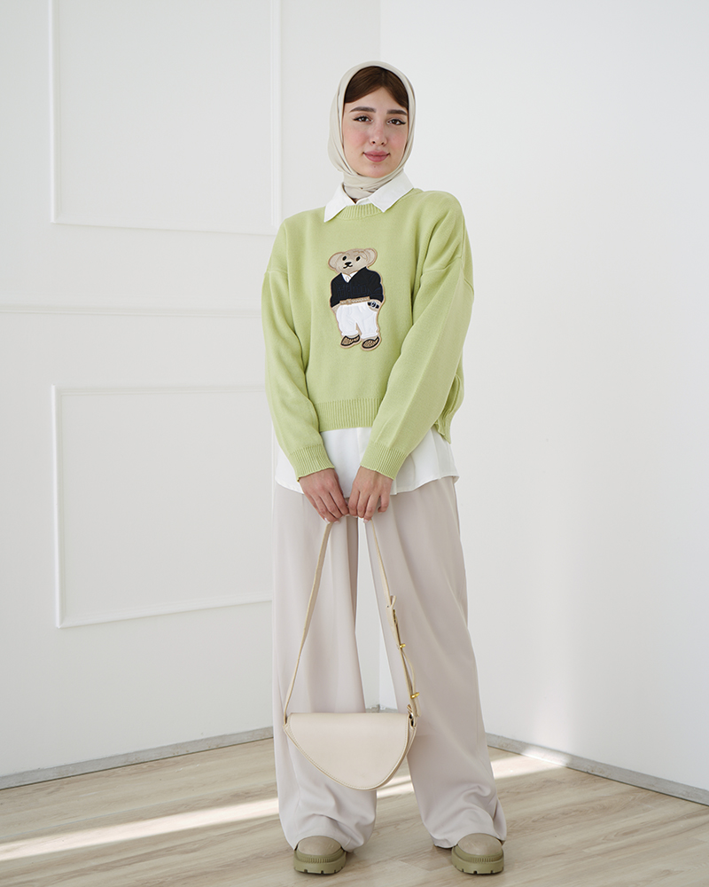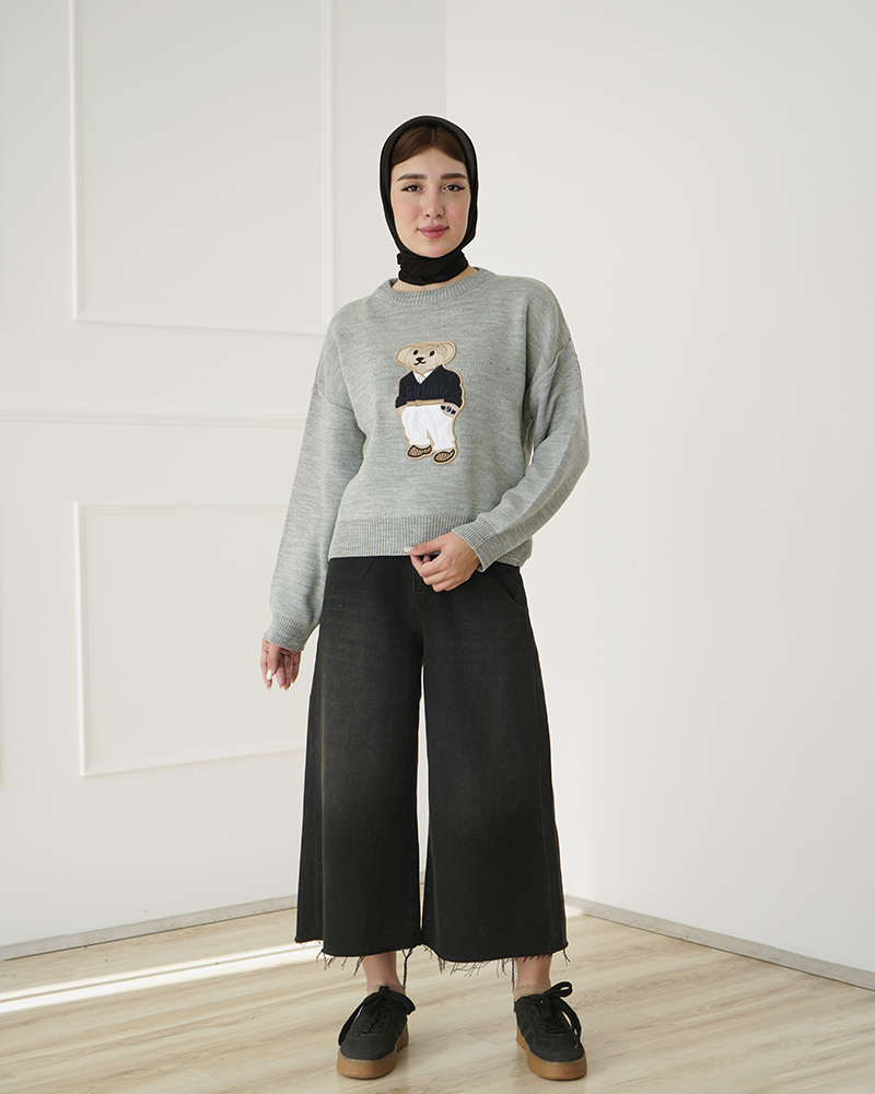 - توضیحات محصول: جنس بلوز، بافت است. بلوز، یقه گرد و آستین بلند می باشد. این محصول کشسانی بالایی دارد. عروسک روی لباس، دوخته شده است.